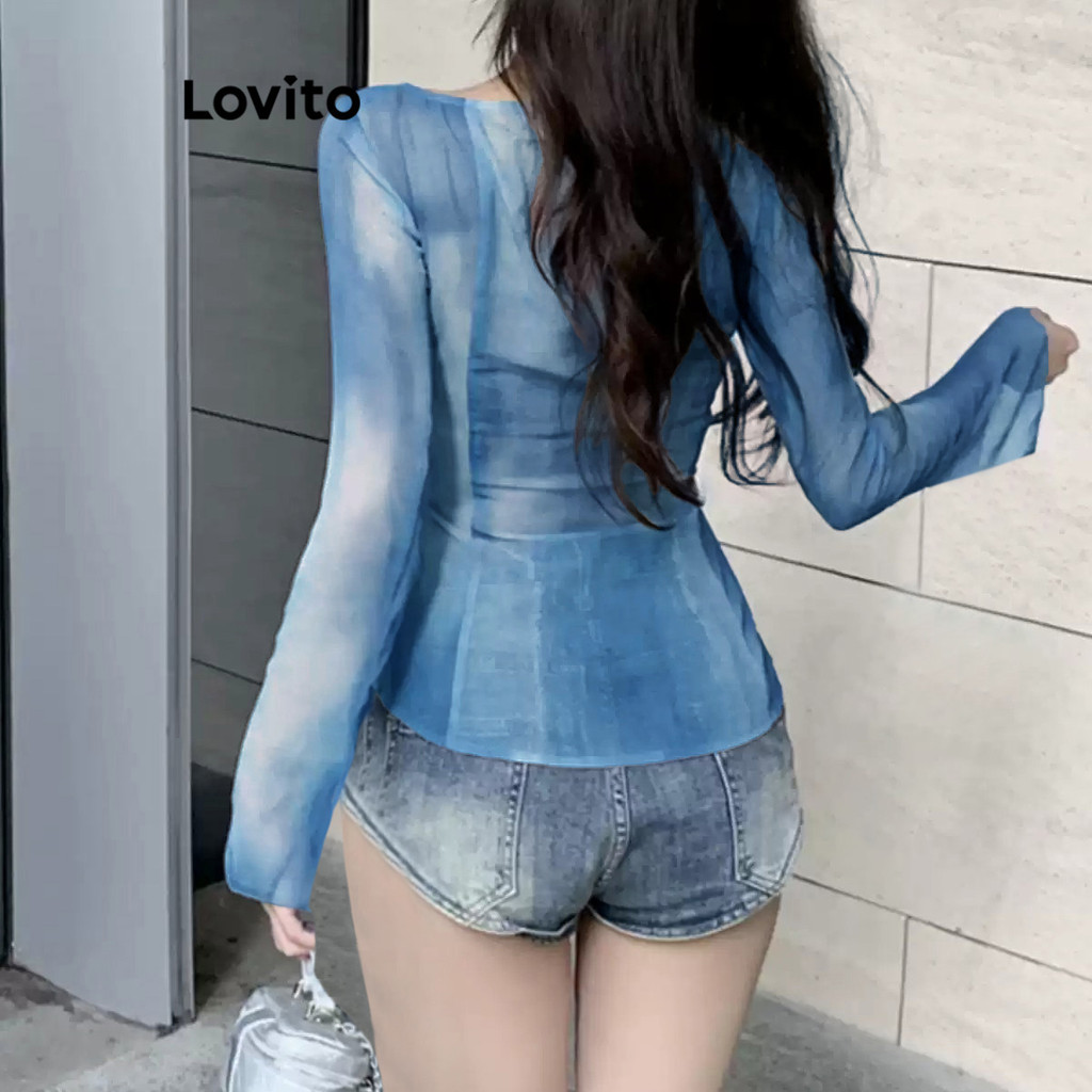 Lovito Blusa Glamourosa Tie Dye Contraste Malha Frontal Babado Blusa Feminina L106AD939