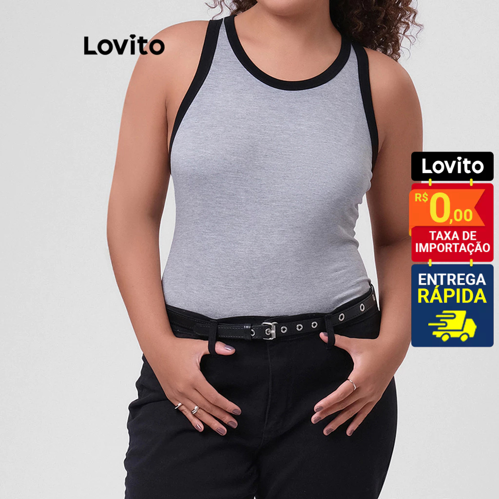 Lovito Regata Feminina Plus Size Gola Contrastante LB249BRL278