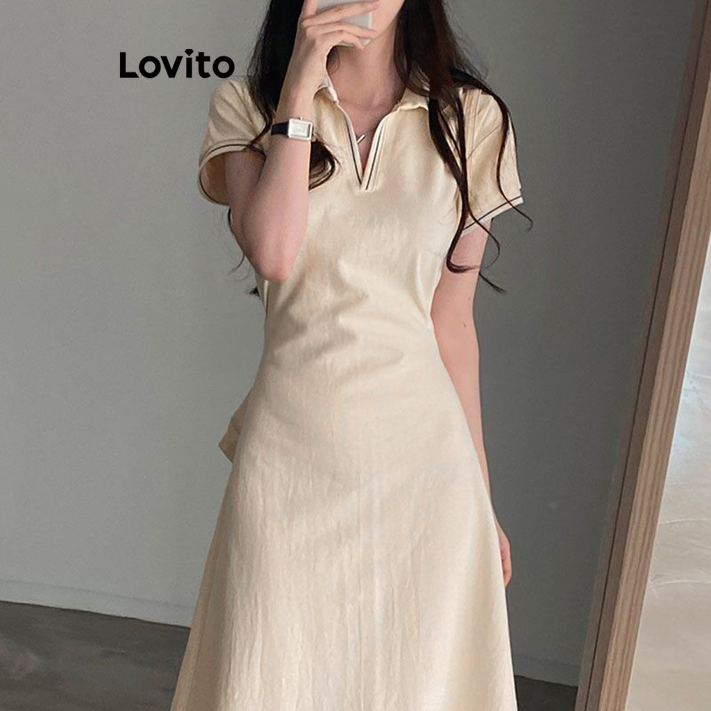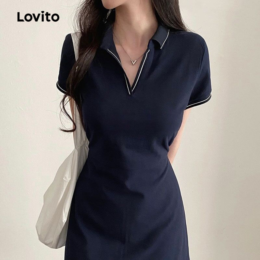 Lovito Vestido Casual Liso Contrastante Com Cadarço Para Mulheres L80ED294