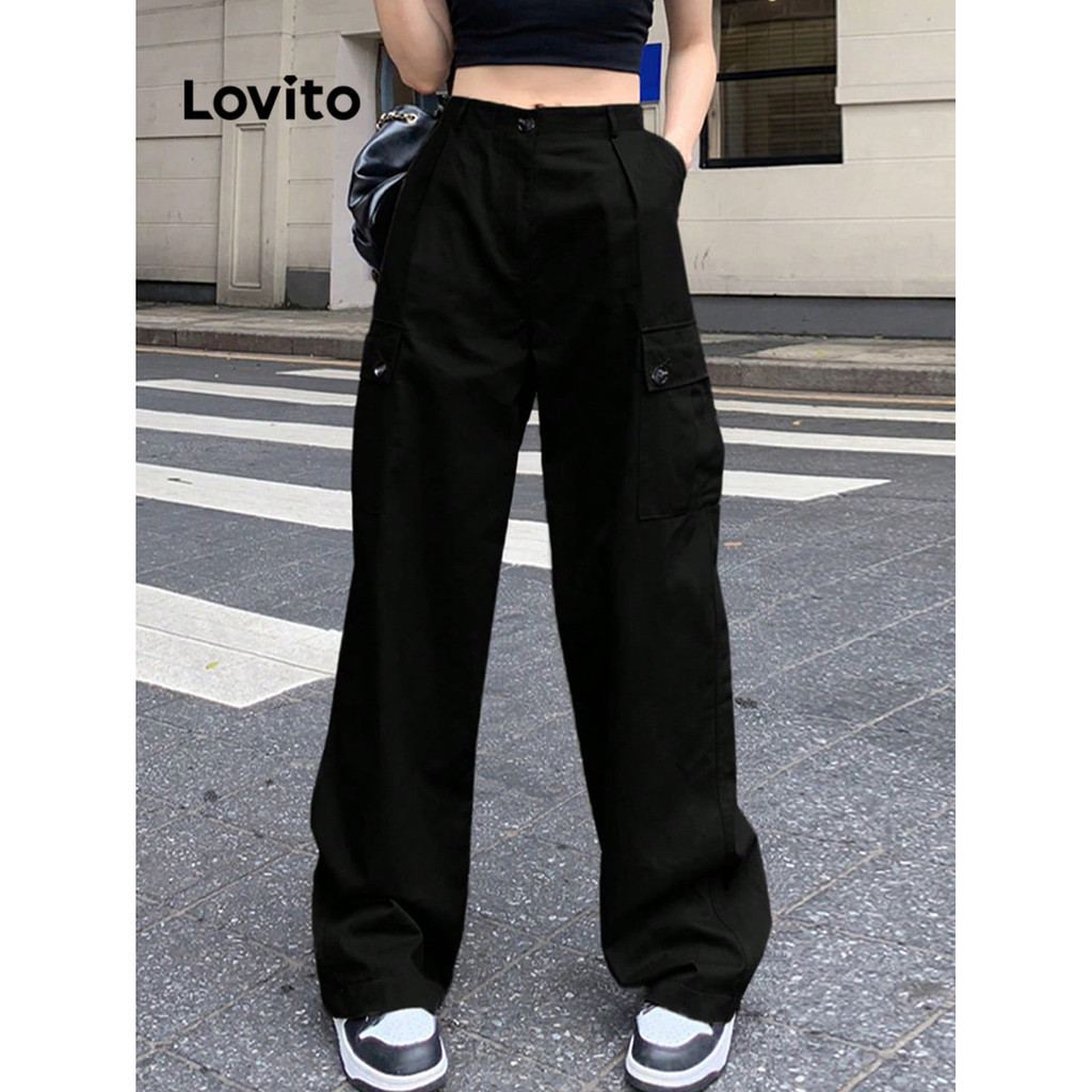 Lovito Calças Básicas com Bolsos para Mulheres L74ED087 (Multicolorido)