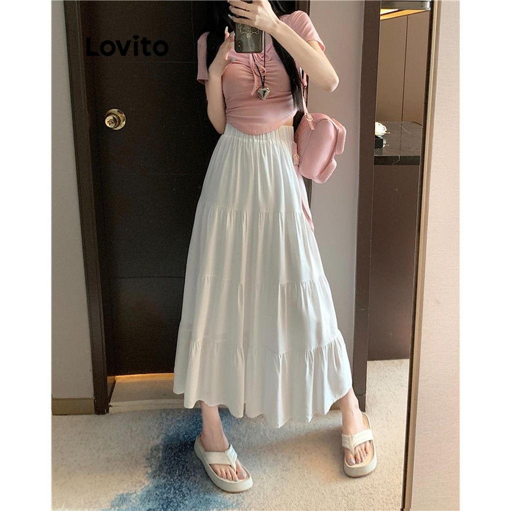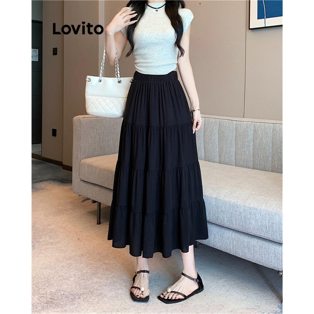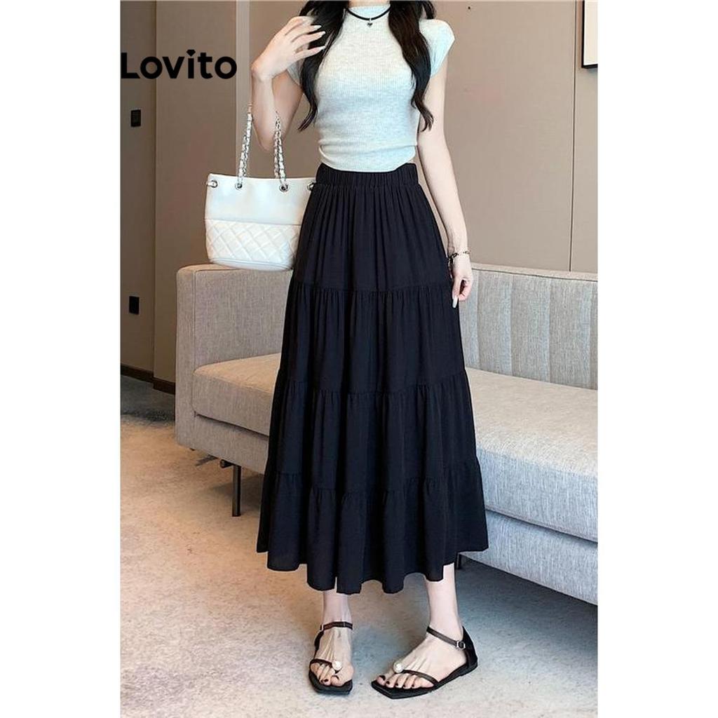 Lovito Saias Casuais Com Estrutura Lisa E Saias Drapeadas Para Mulheres LNE59445 (Multicolorido)