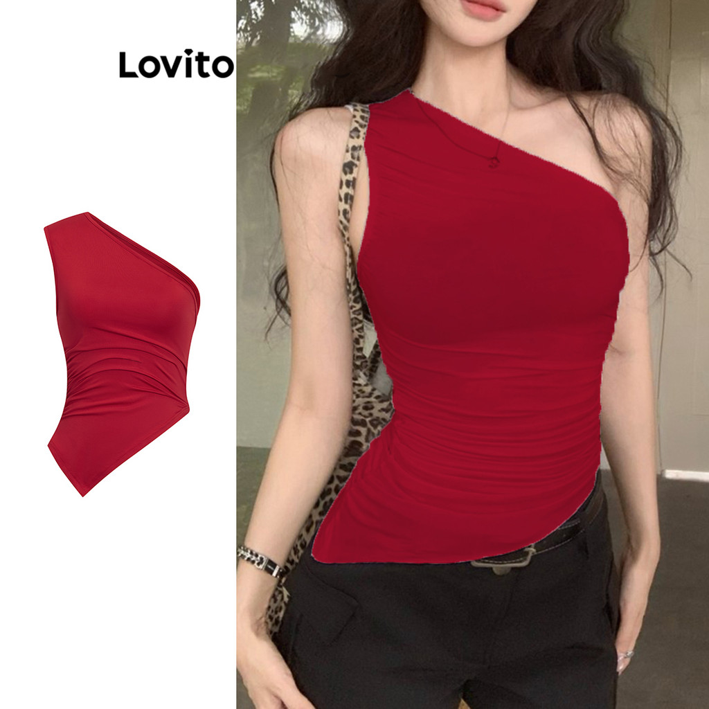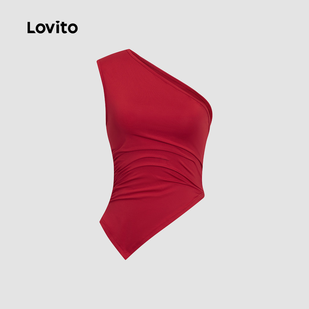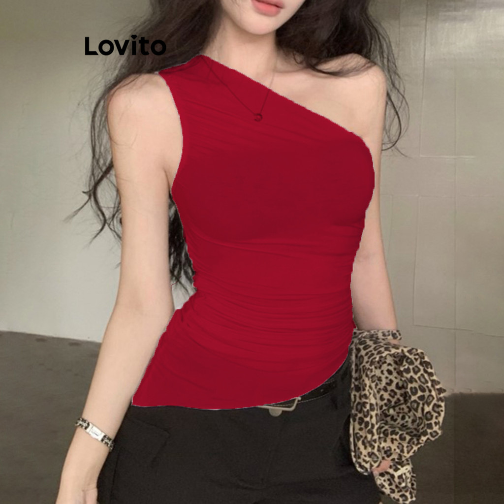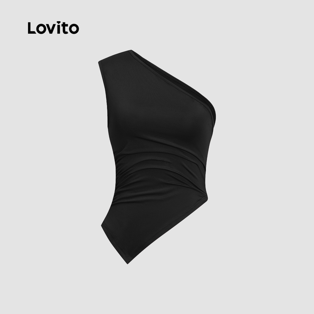 Lovito Regata Casual Lisa Com Franzido Para Mulheres L104ED738