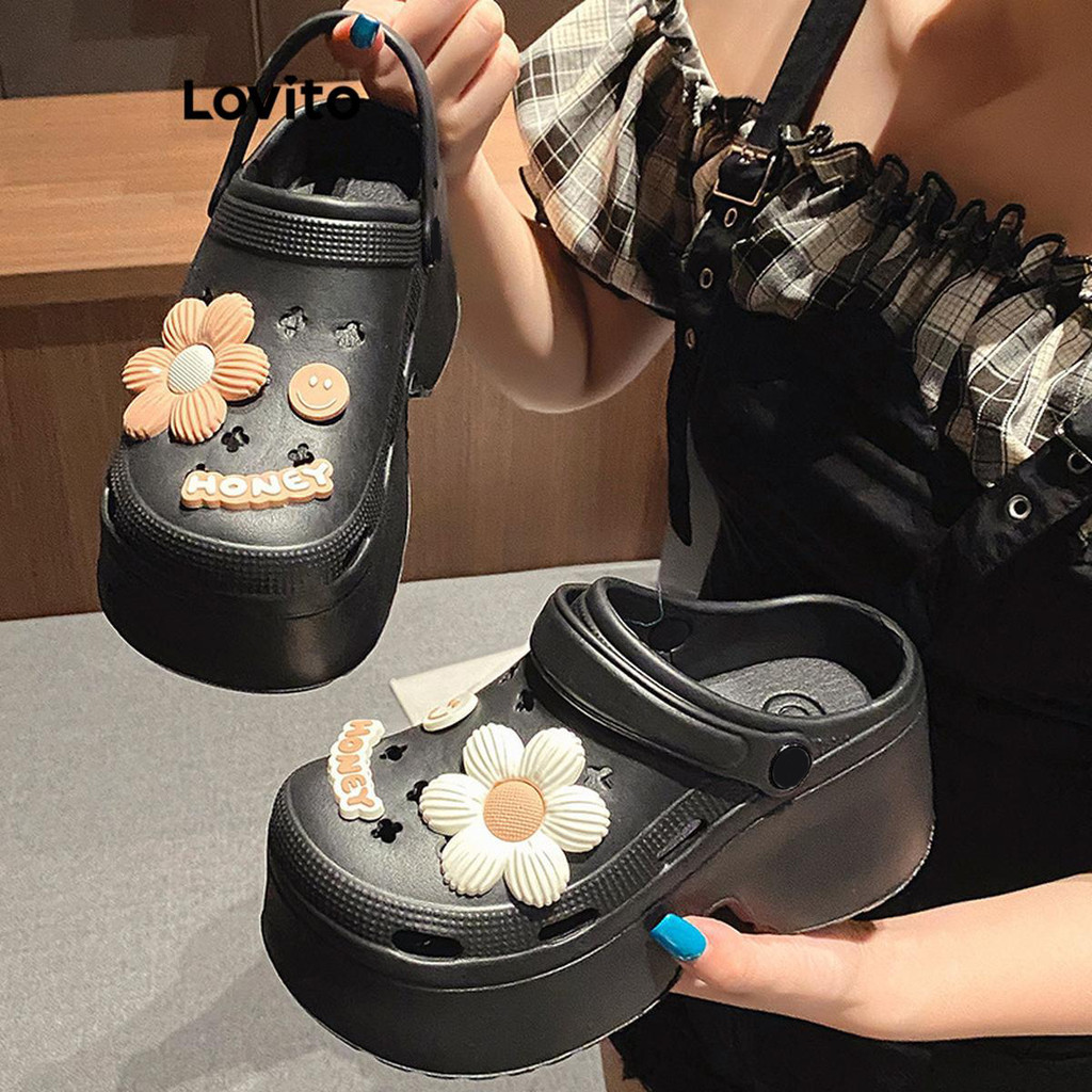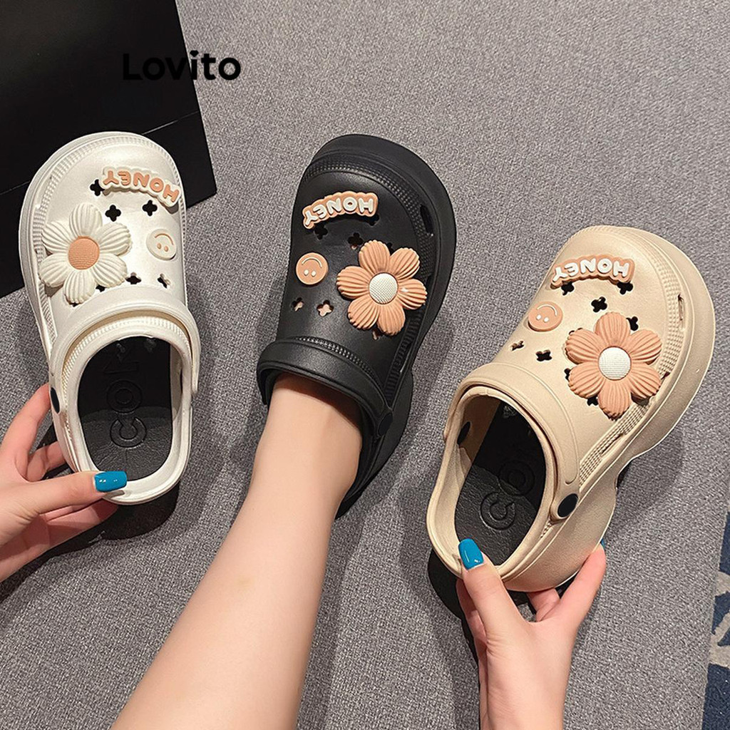 (Trendy) Lovito Casual Plain 9 cm Extra Grosso Mais Longas Sandália Plana para Mulheres LFA60336