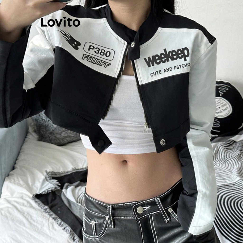 Lovito Jaqueta Casual Com Padrão Liso Para Mulheres LNA71008 (Multicolorido)