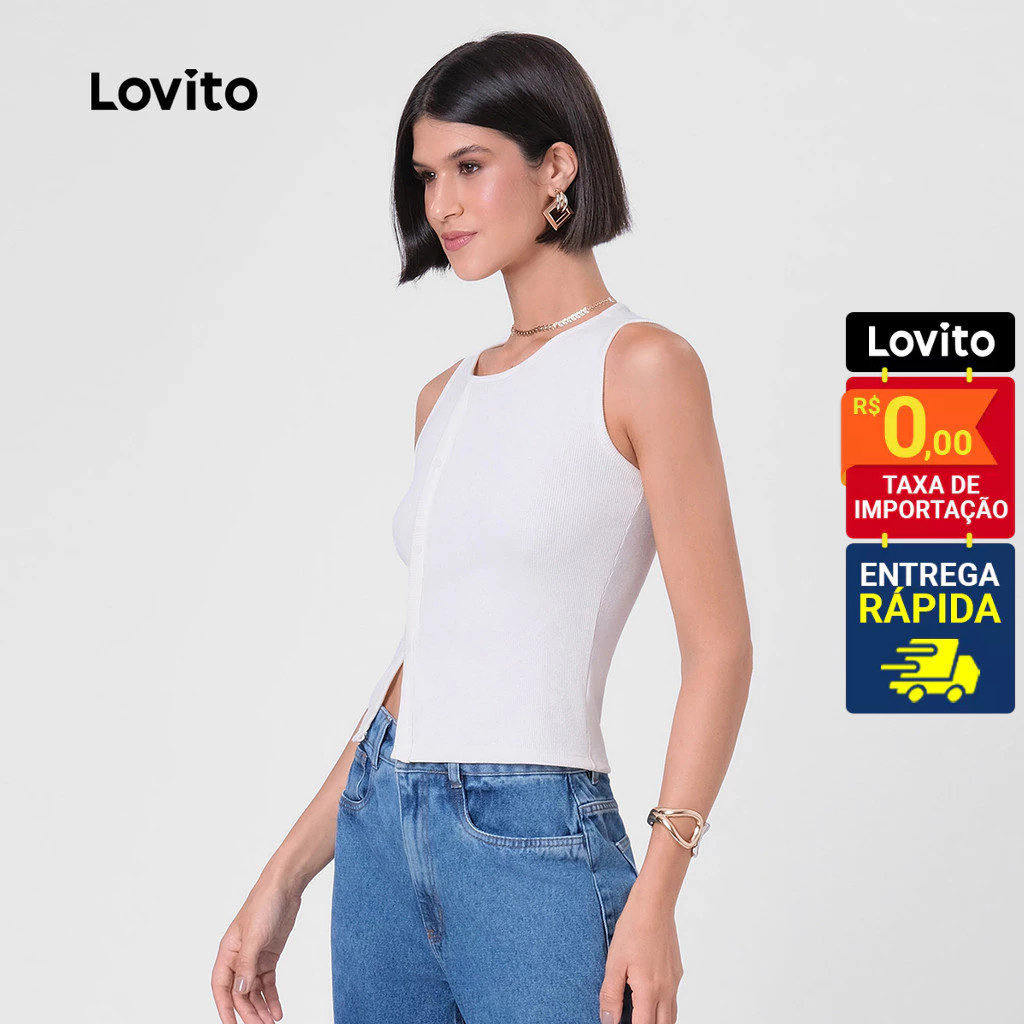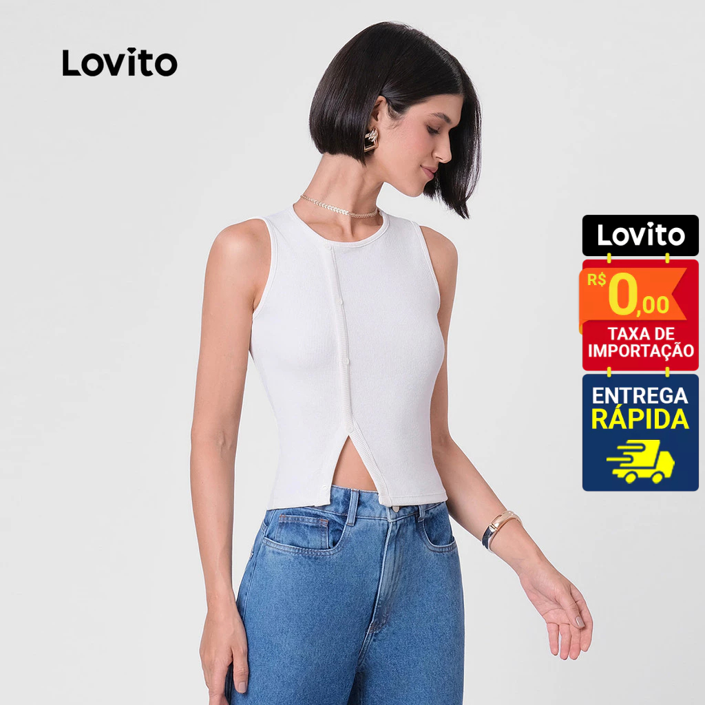 Lovito Regata Feminina Casual com Botão e abertura Assimétrica LB110BRL139