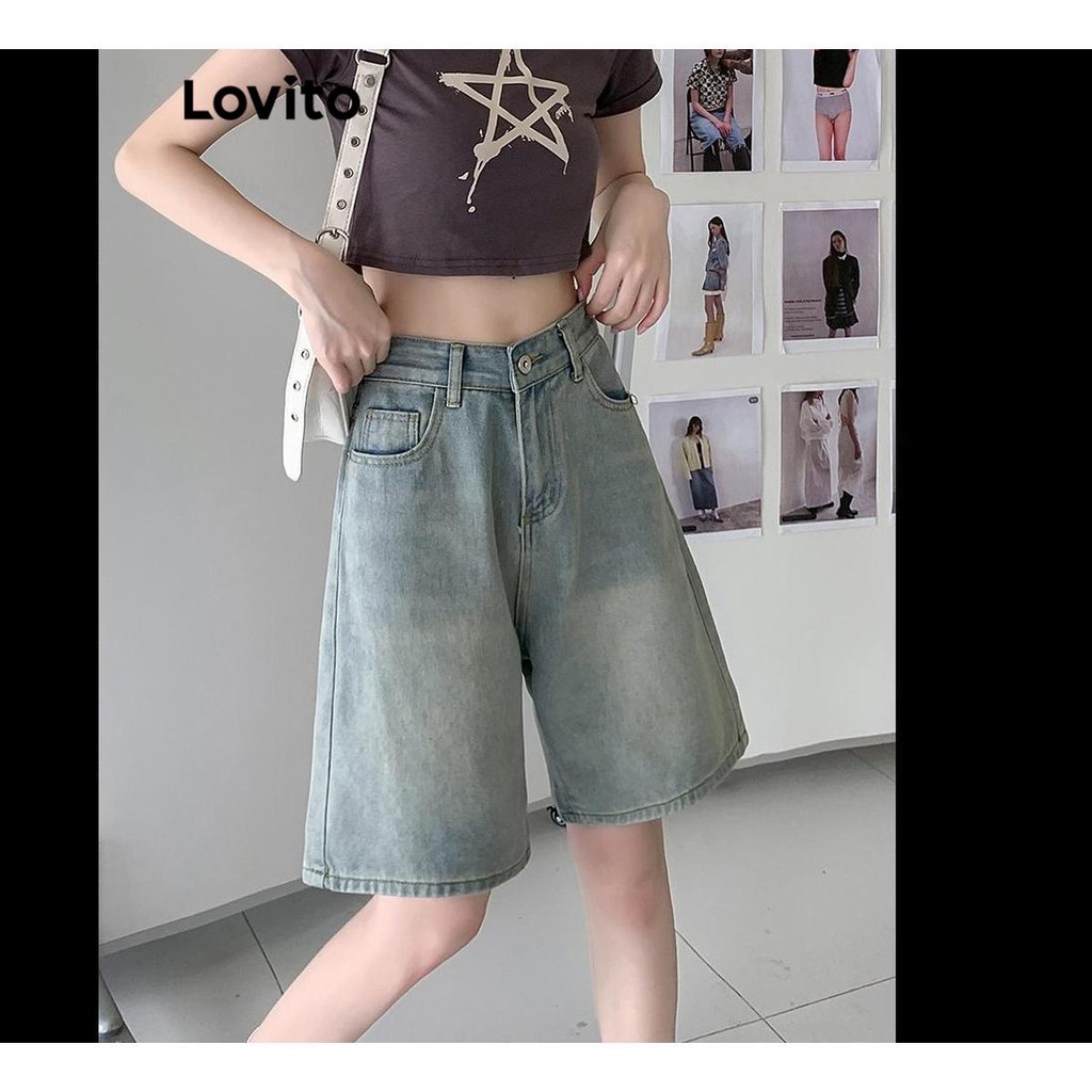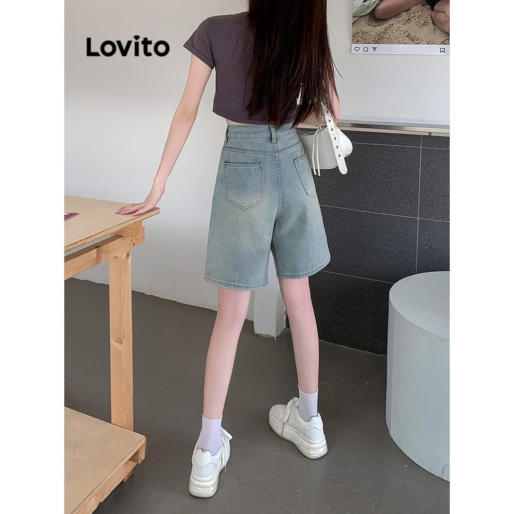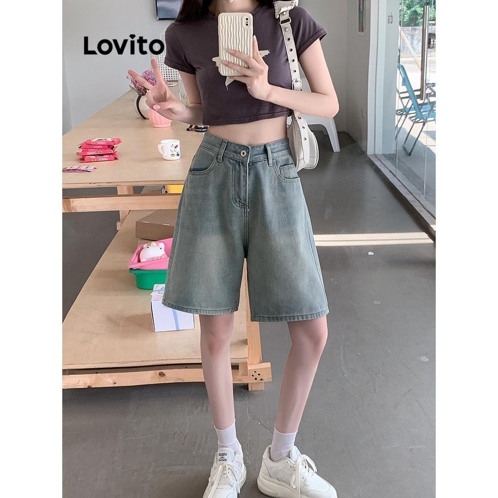 Lovito Shorts Jeans Casuais Com Botões Lisos Para Mulheres LNA52257