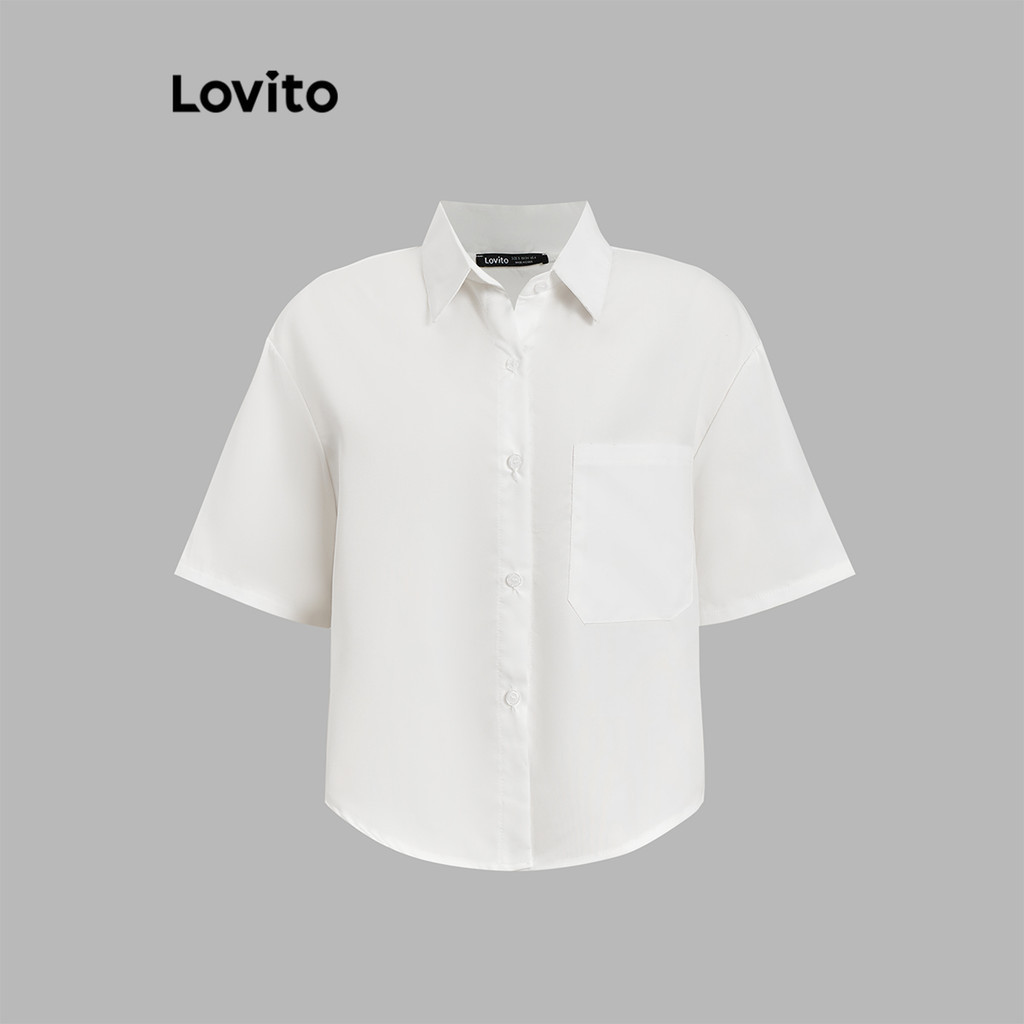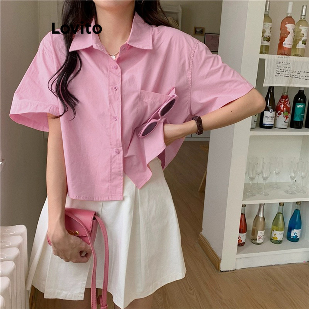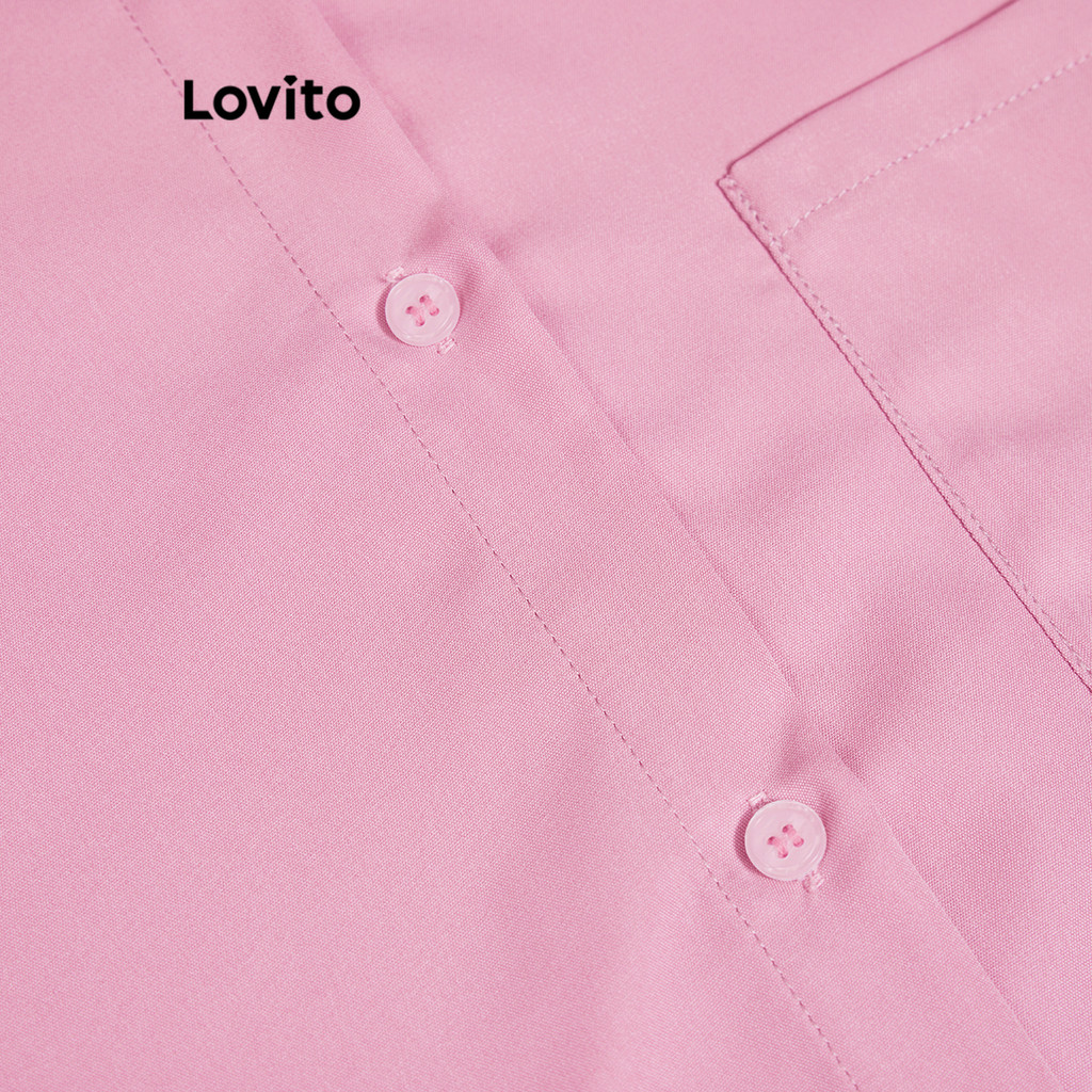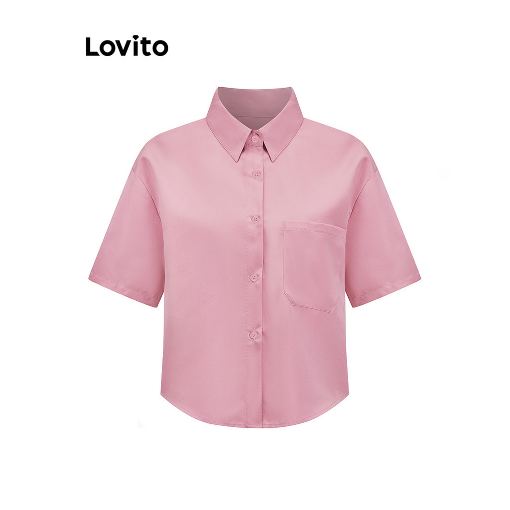 Lovito Blusa Casual Blusa Lisa Com Bolso E Botão Para Mulheres L79AD006 (Multicolorido)