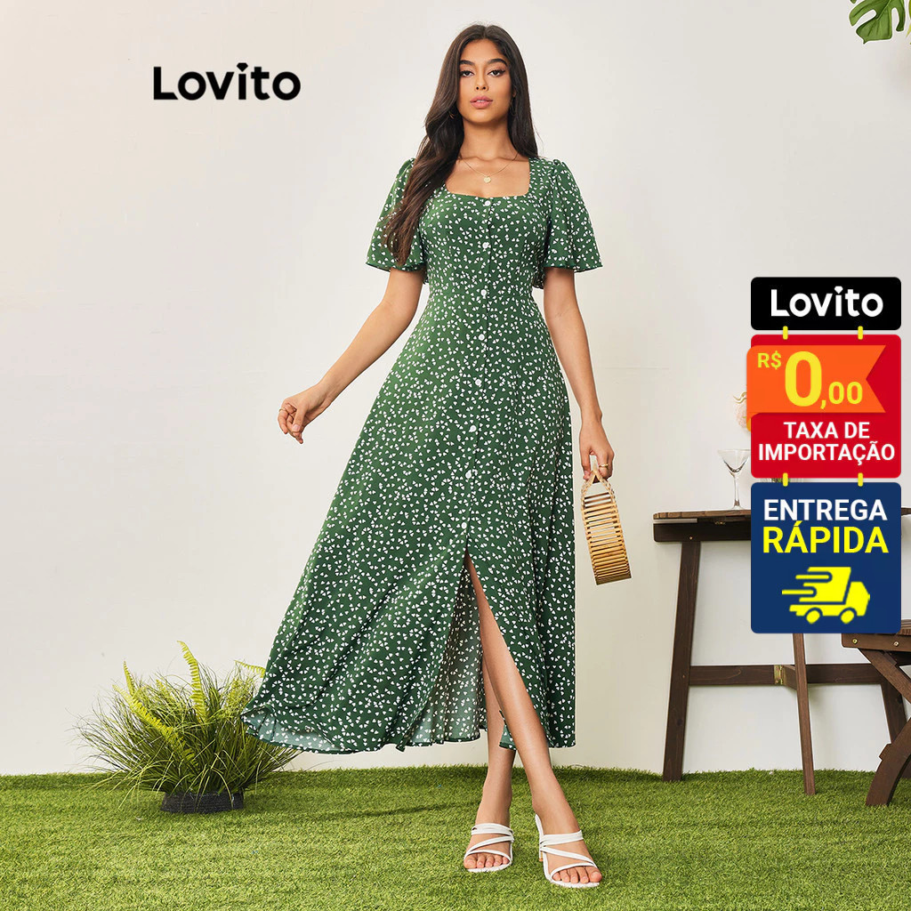 Lovito Vestido Feminino Midi Estampado Botões Frente LBA05180