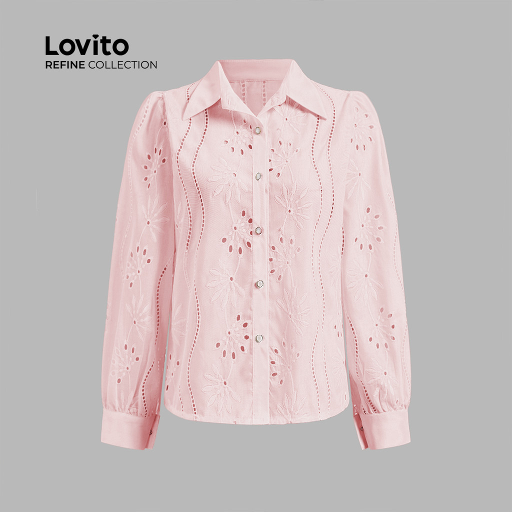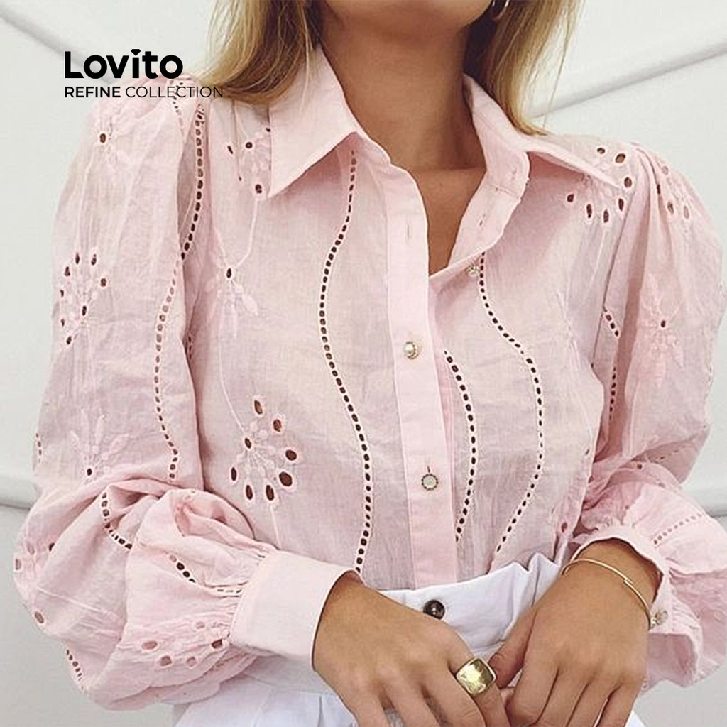 (Trendy) (Lovito Refine) Blusa elegante com recorte liso para mulheres LR7LD021