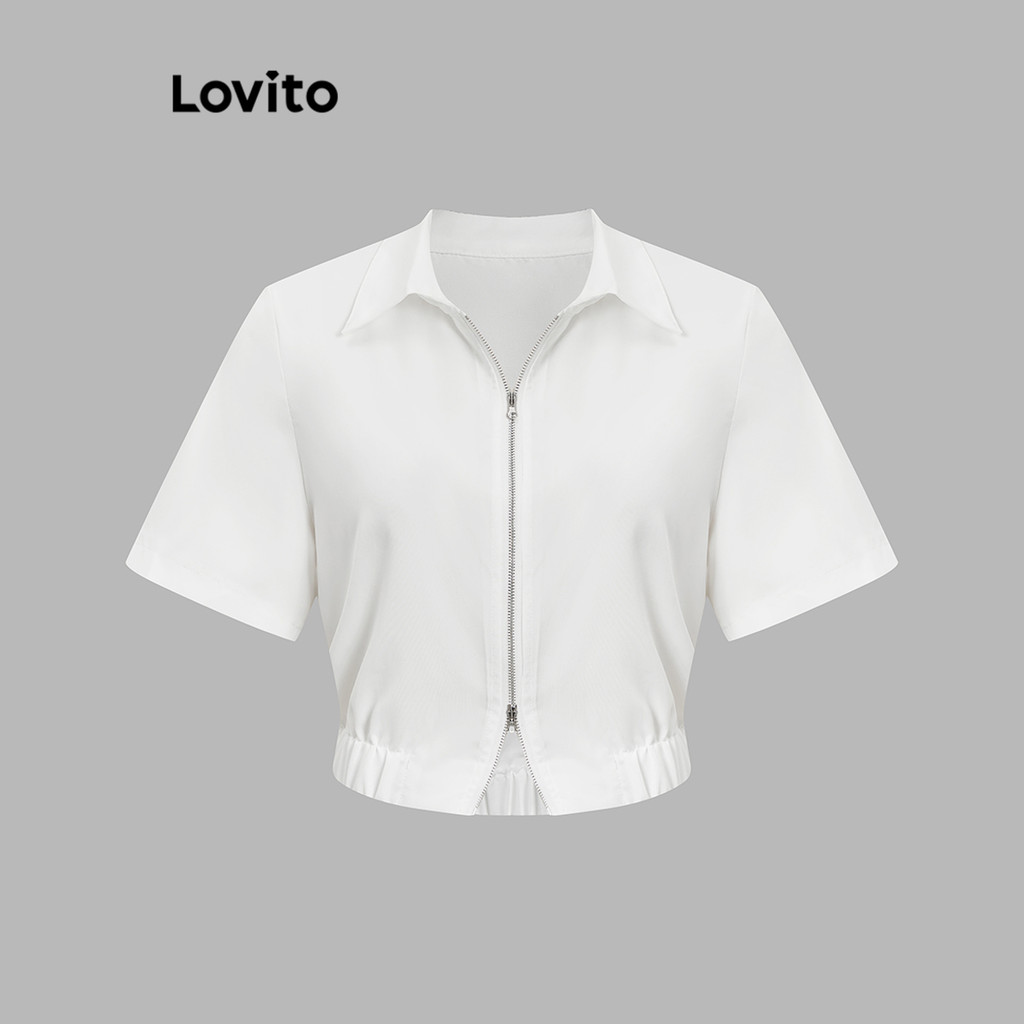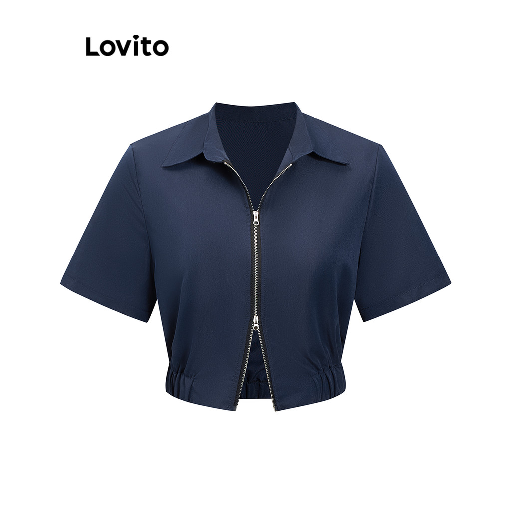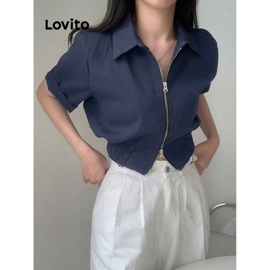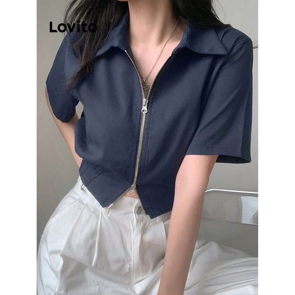 Lovito Blusa Preppy Blusa Simples Com Zíper Para Mulheres L82AD009 (Multicolorido)