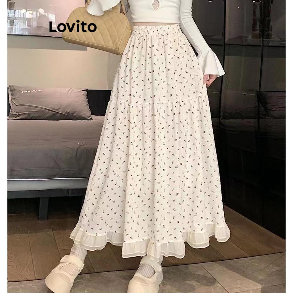 Lovito Saias Casuais Ditsy Floral Ruffle Saias Para Mulheres LNA60317