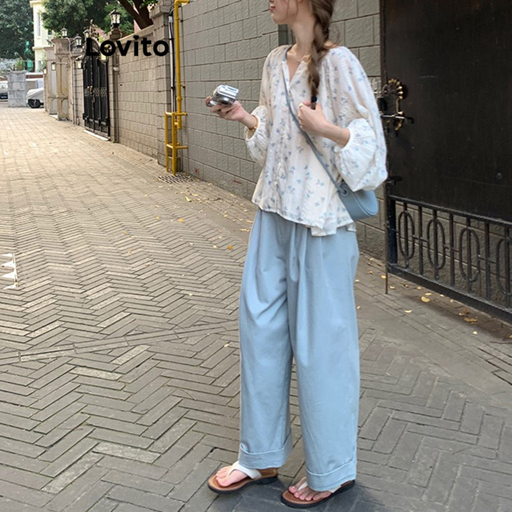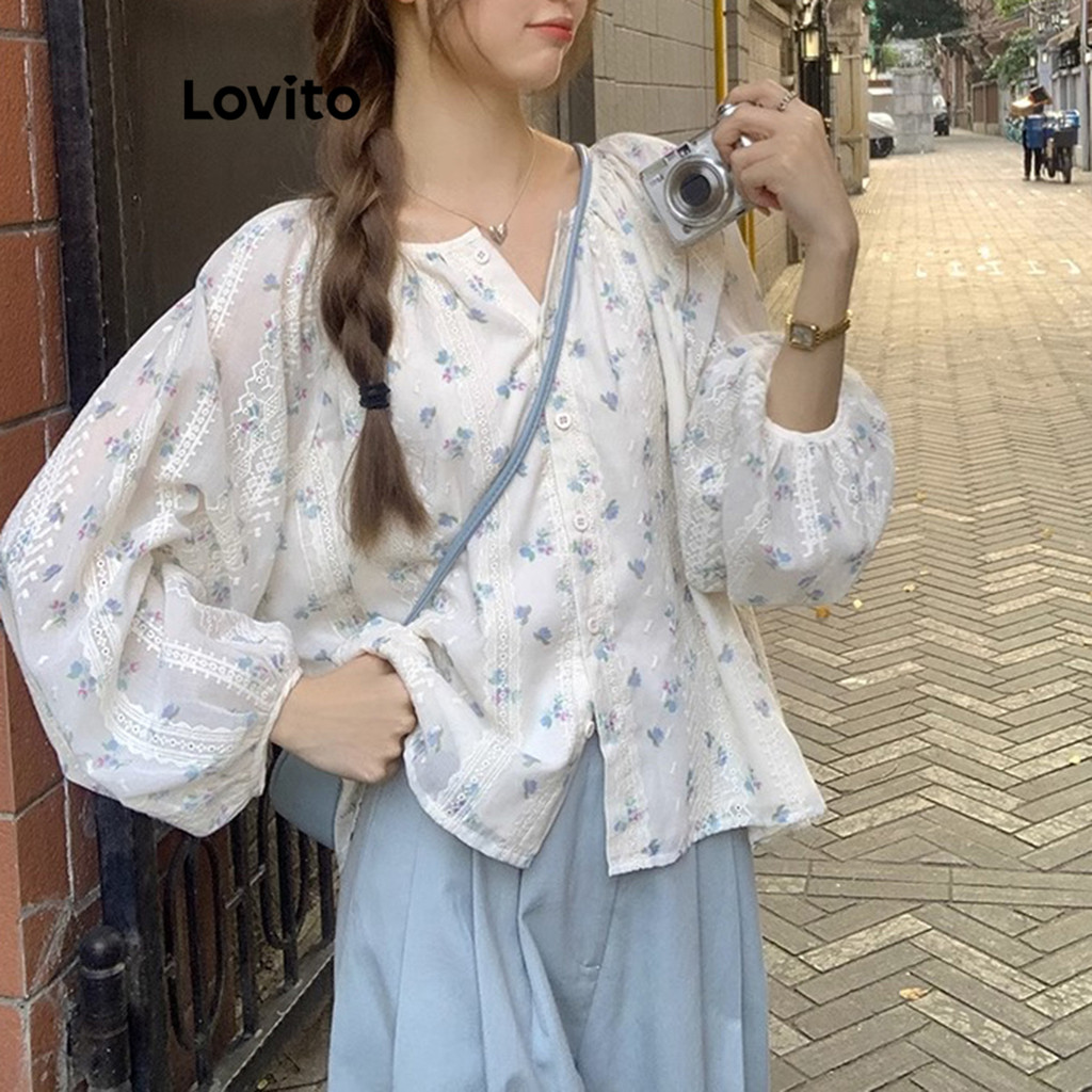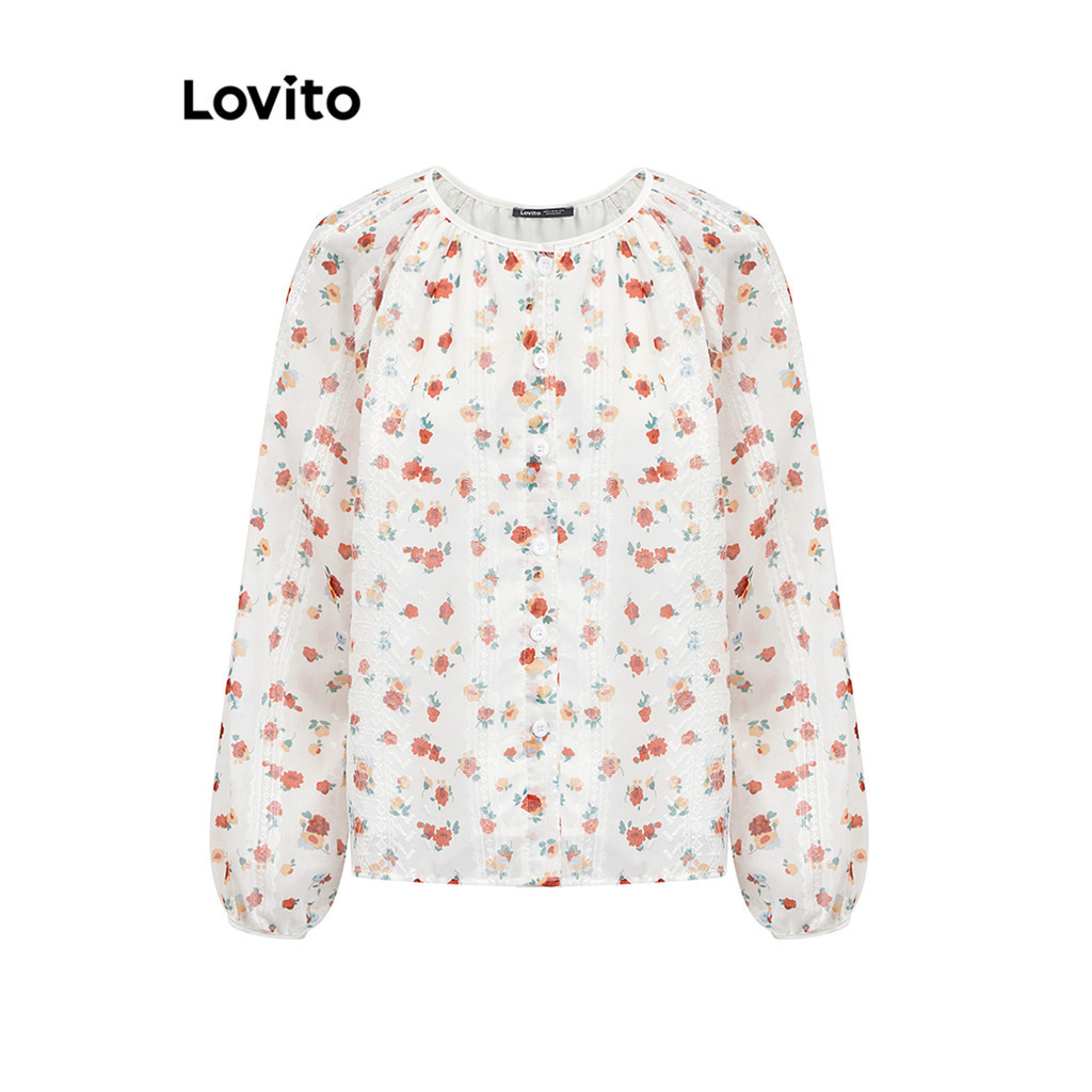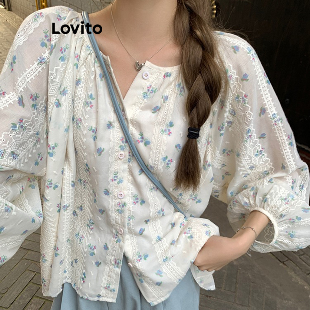 Lovito Blusa Casual Ditsy Com Bordado Floral E Botão Frontal Para Mulheres LNA29063 (Multicolorido)