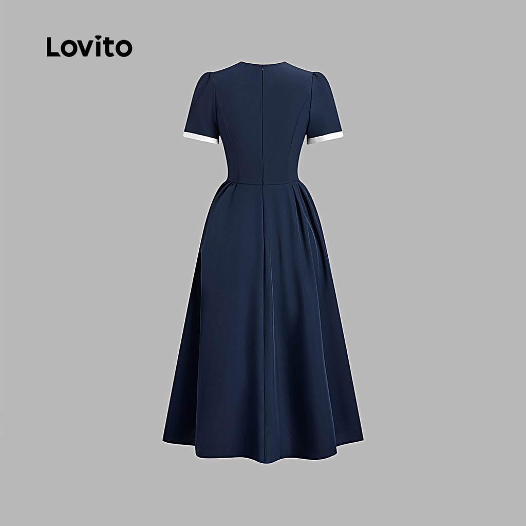 Lovito Vestido Elegante Clássico E Versátil Em Blocos De Cores Azul Para a Primavera/verão Ideal Para Mulheres L149ED428