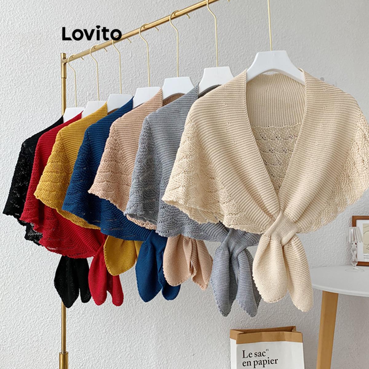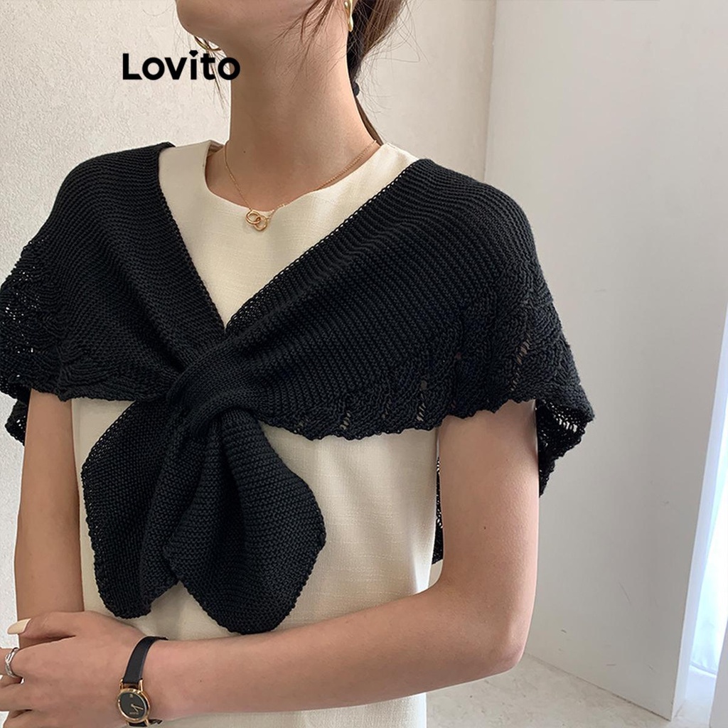 Lovito Formal Lenço Feminino de Malha Simples com Nó Cut Out Estampa Pés de Corvos LFA10137