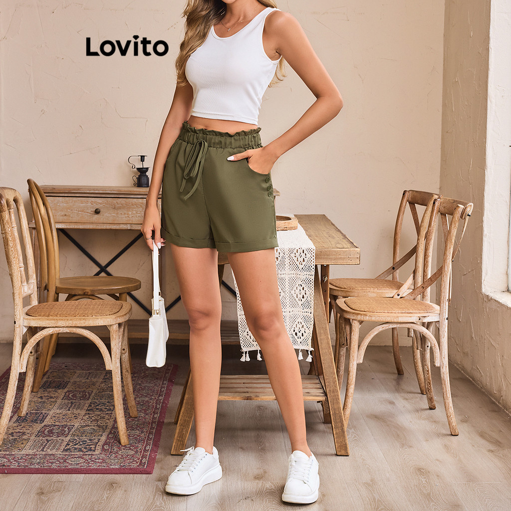 Lovito Shorts Casuais Com Bolsos Lisos Para Mulheres LBL17128