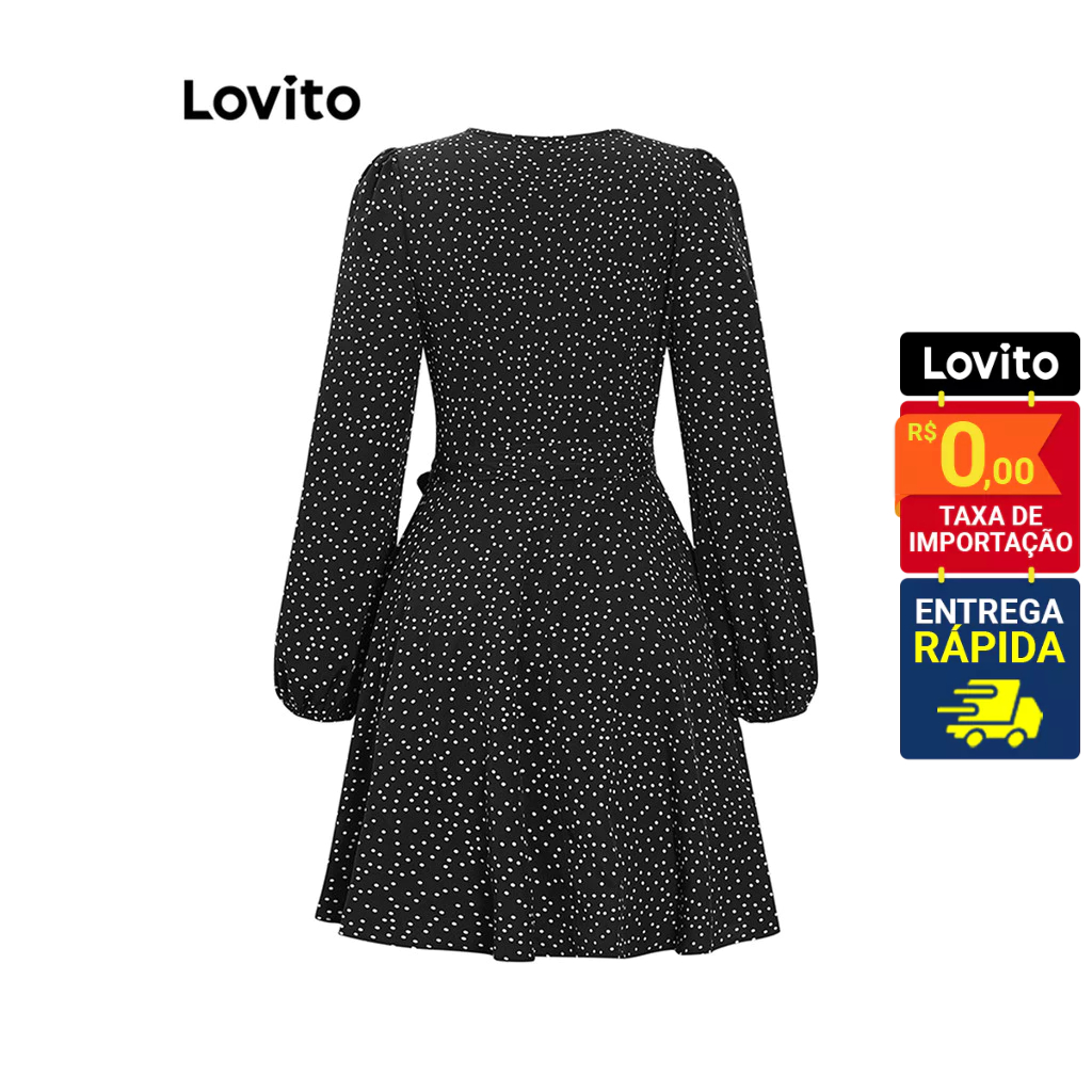 Lovito Vestido Feminino Curto Manga Longa Estampado LNE27238