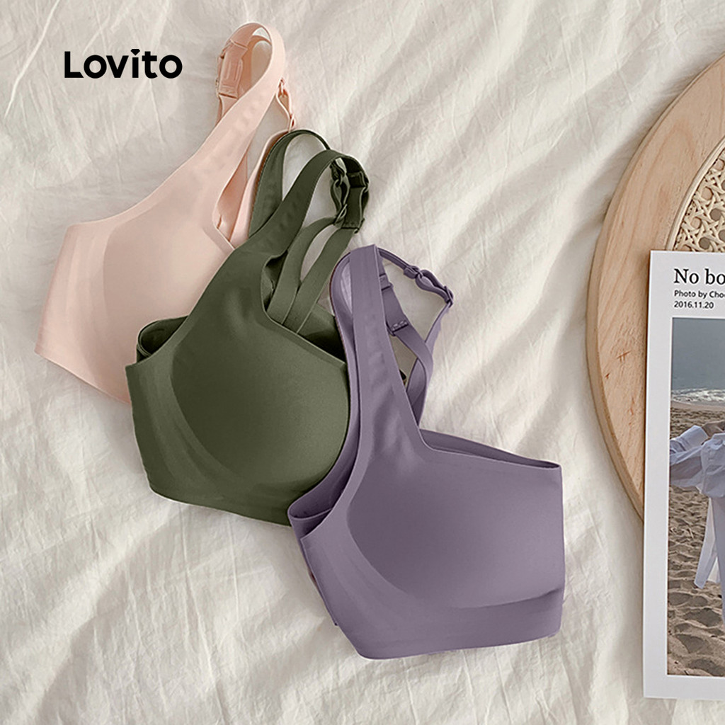 Lovito Sutiã Bralette Sexy Sem Costura Respirável Com Fivela Para Mulheres LNL43214