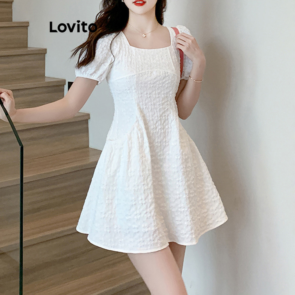 Lovito Vestido Casual Vestido De Bolso Liso Para Mulheres LNE52157