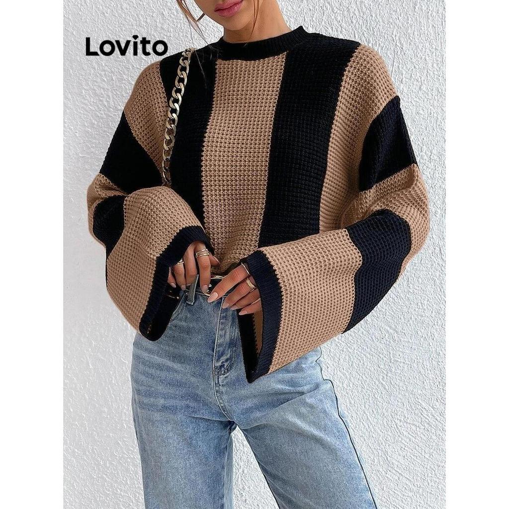 Lovito Suéter Casual Listrado Colorblock Para Mulheres LNL55321