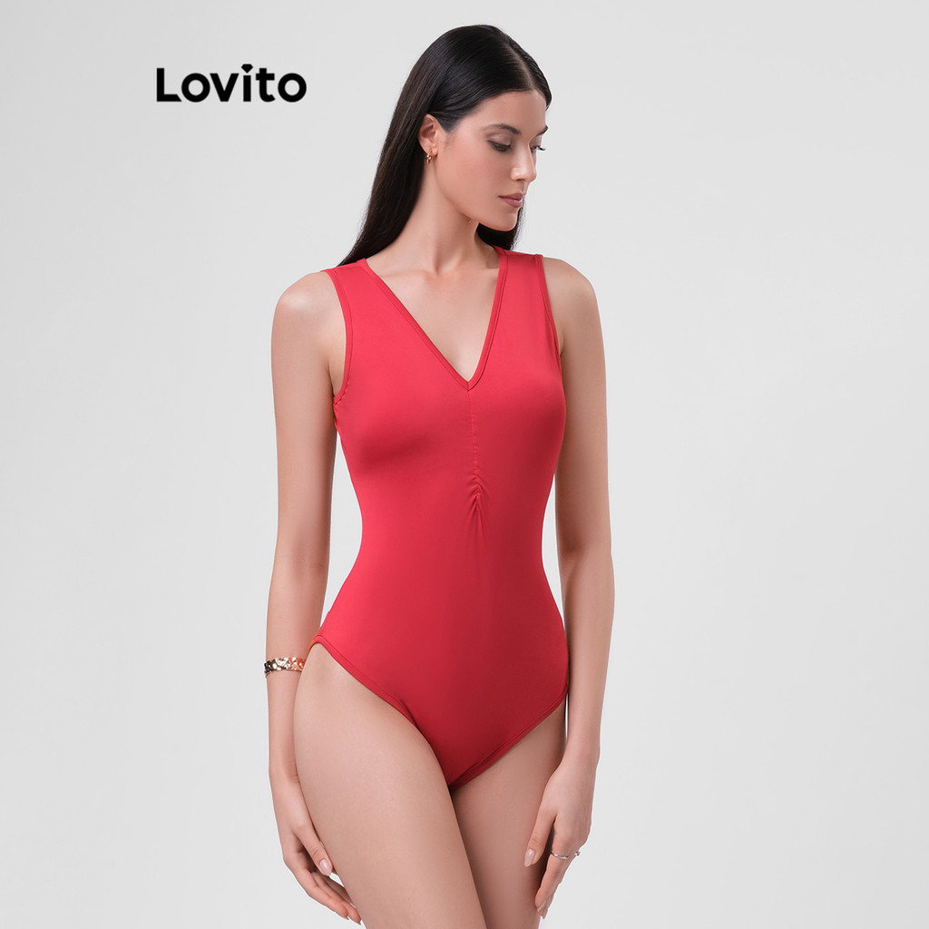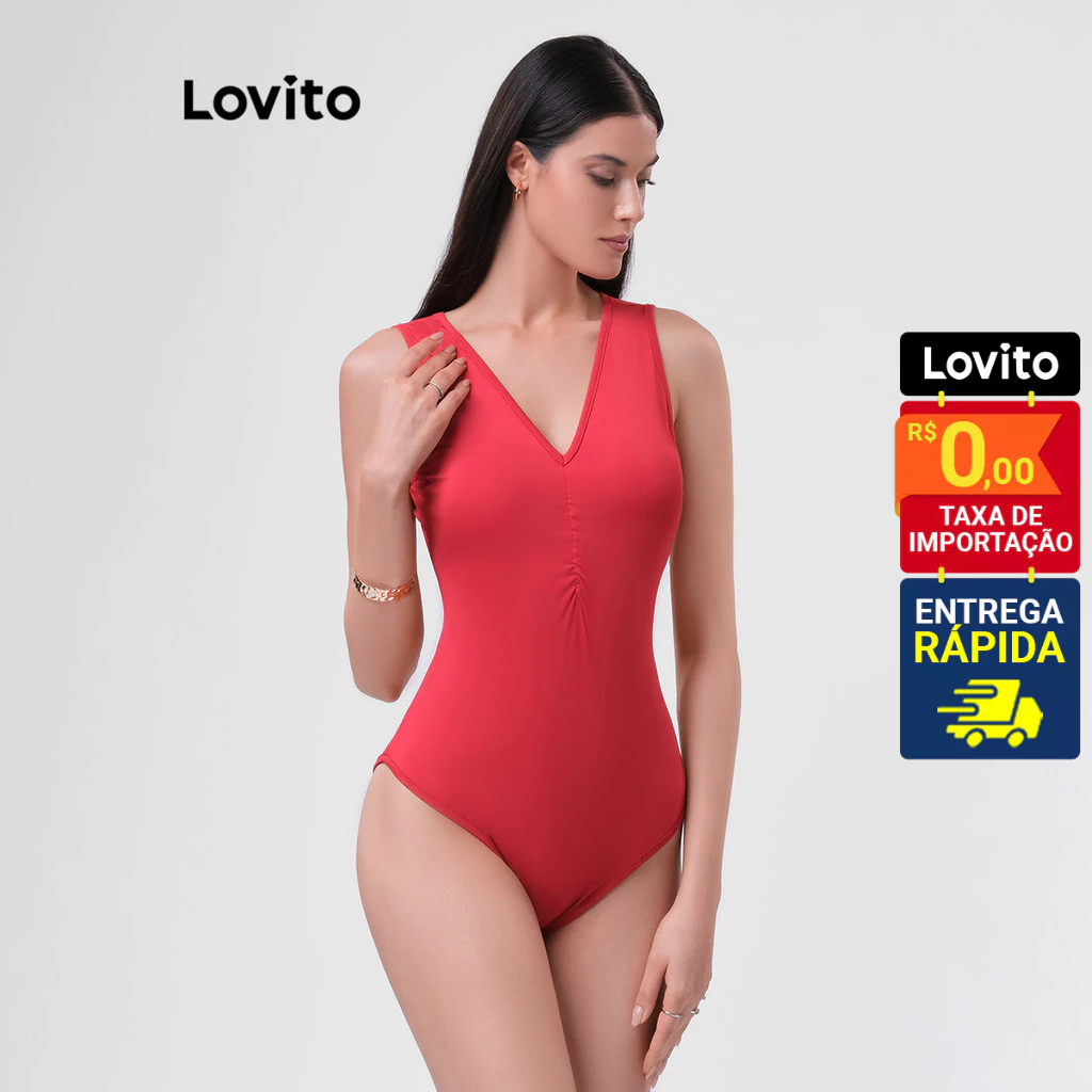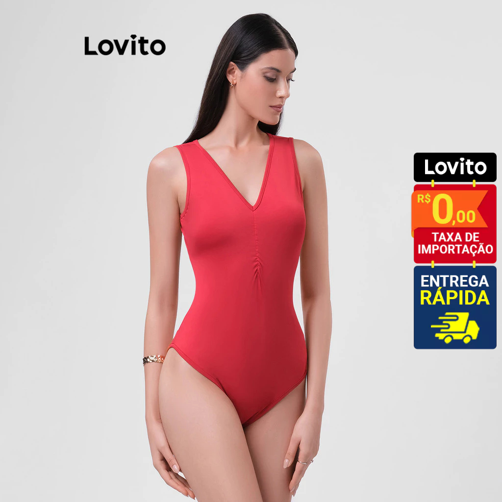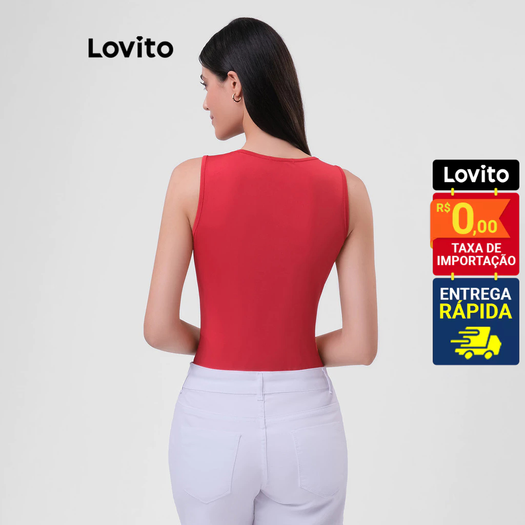 Lovito Body Decote V Frente sem Mangas Basico Feminino LB32BRL061