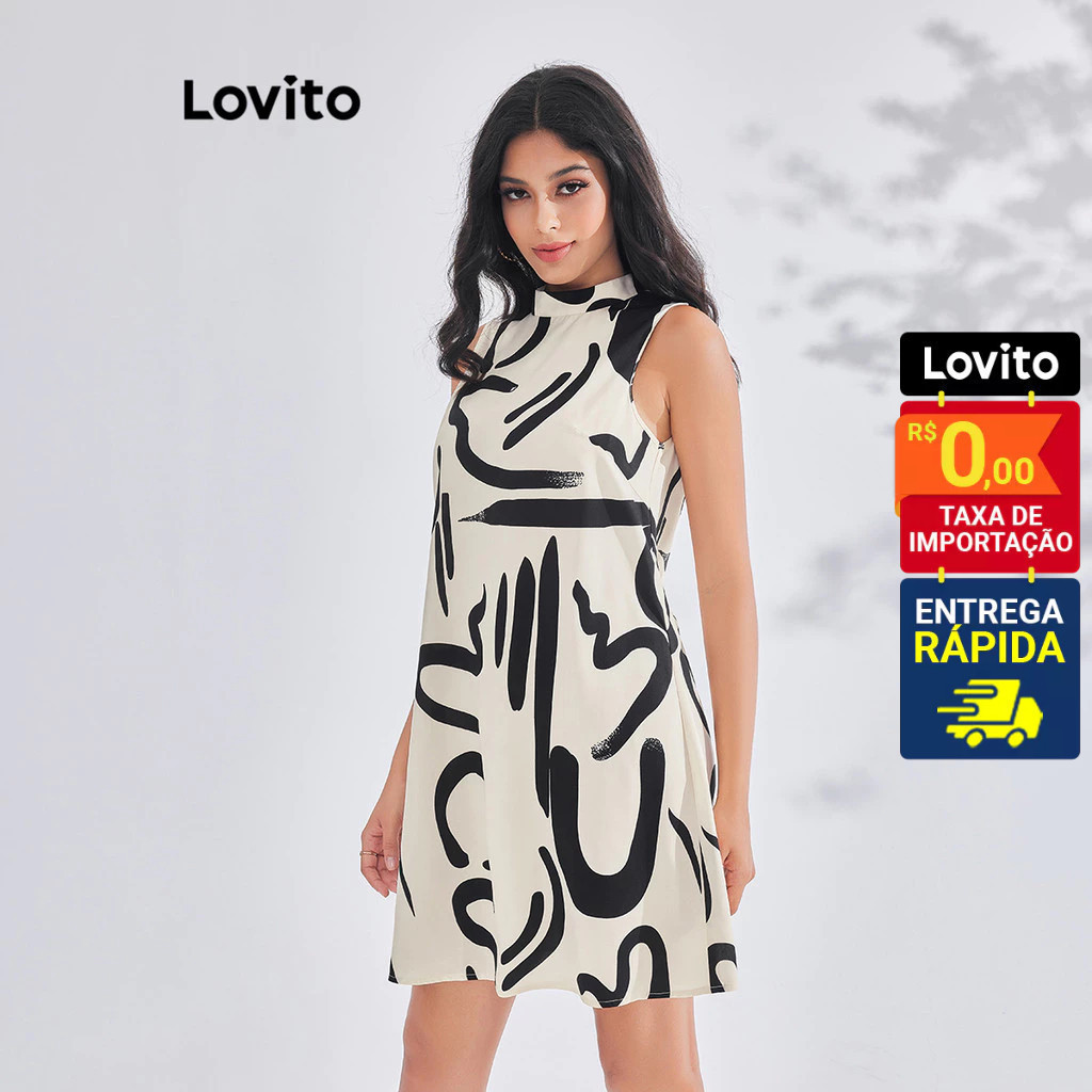 Lovito Vestido Curto Gola Alta Estampa Geometrico Feminino LBE03013