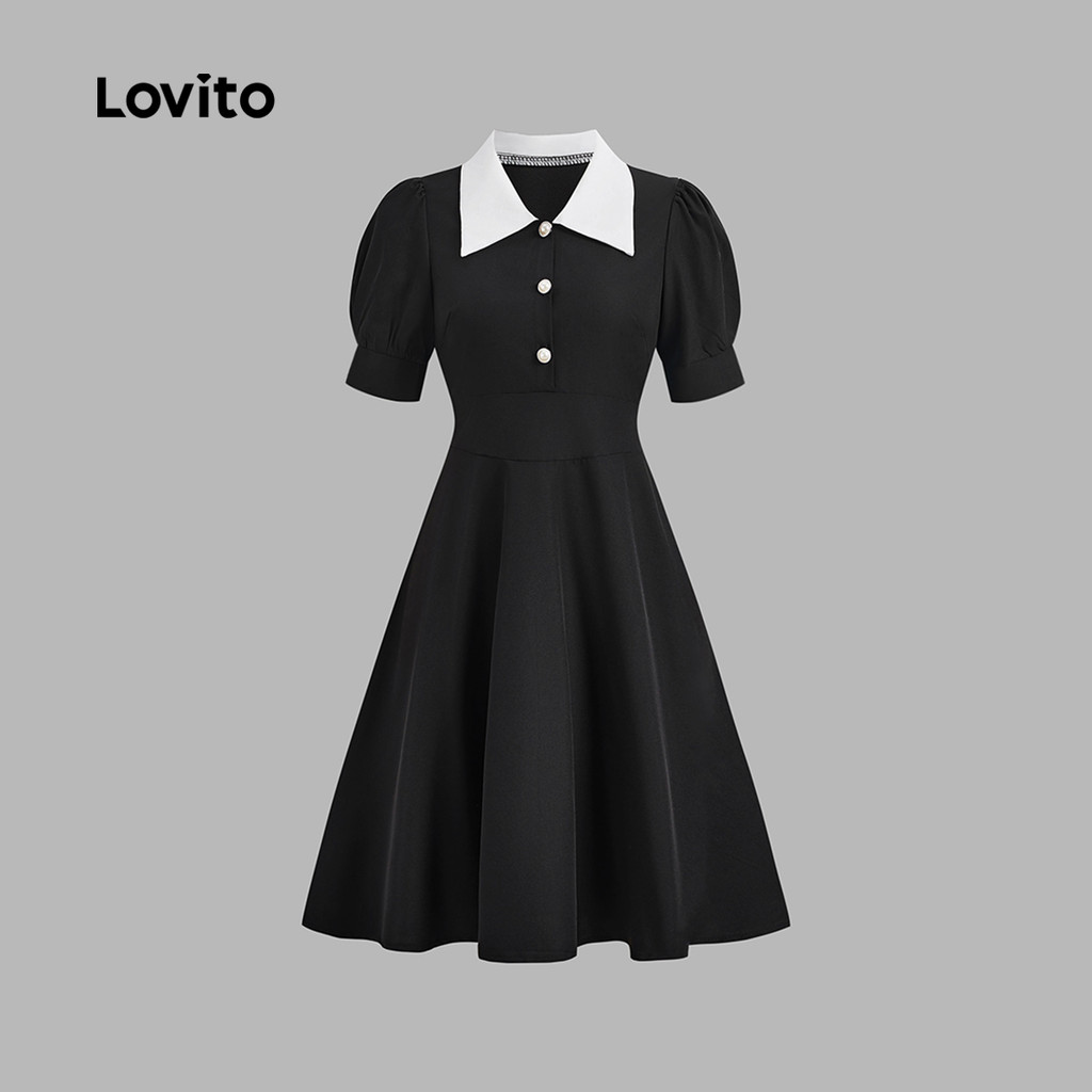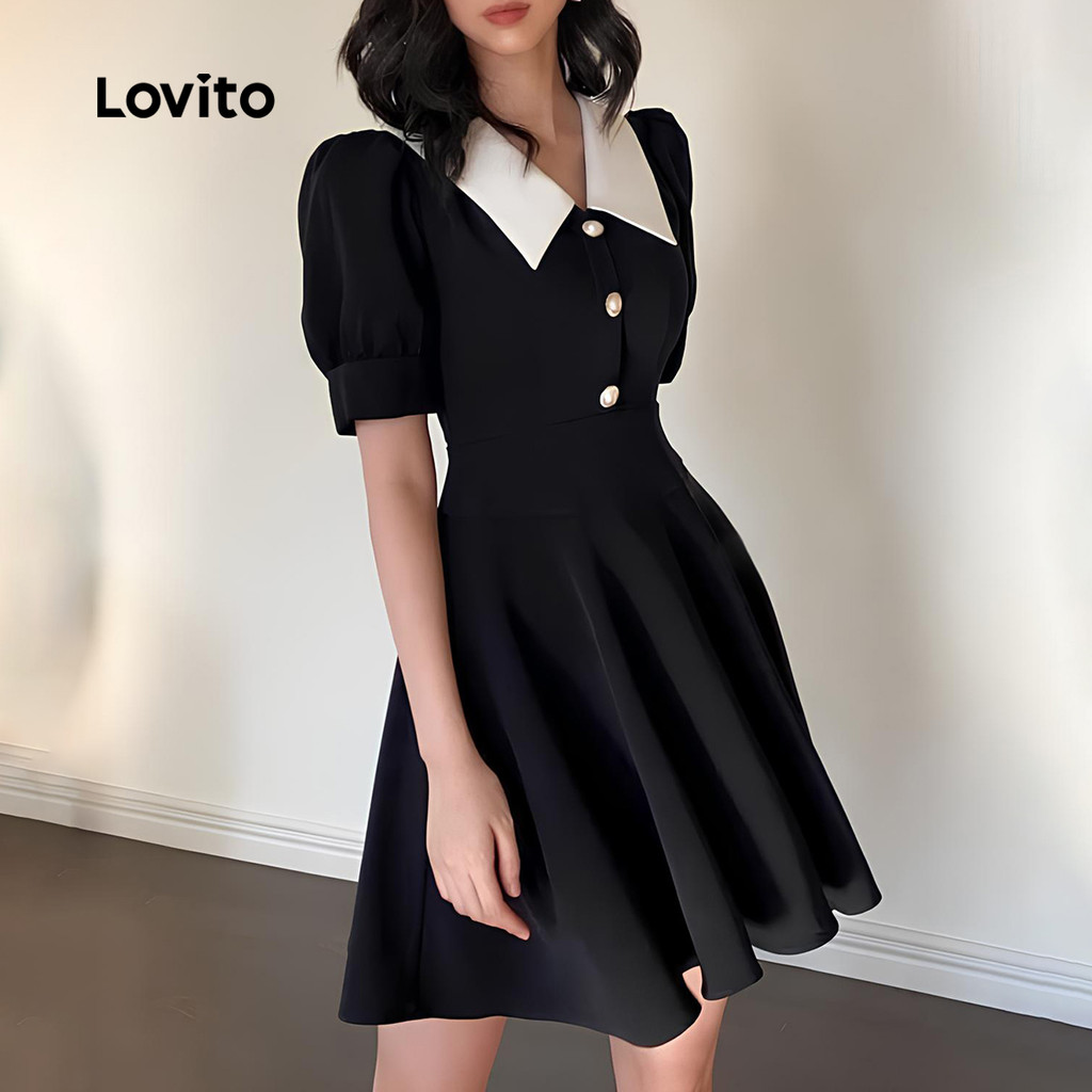 Lovito Vestido Elegante, Liso, Com Botões, Em Bloco De Cores, Para Verão/primavera, Para Mulheres L131LD1011