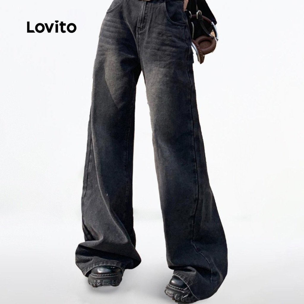 Lovito Jeans Femininos Casuais Com Botão Liso E Bolso Frontal Com Zíper LNA49080