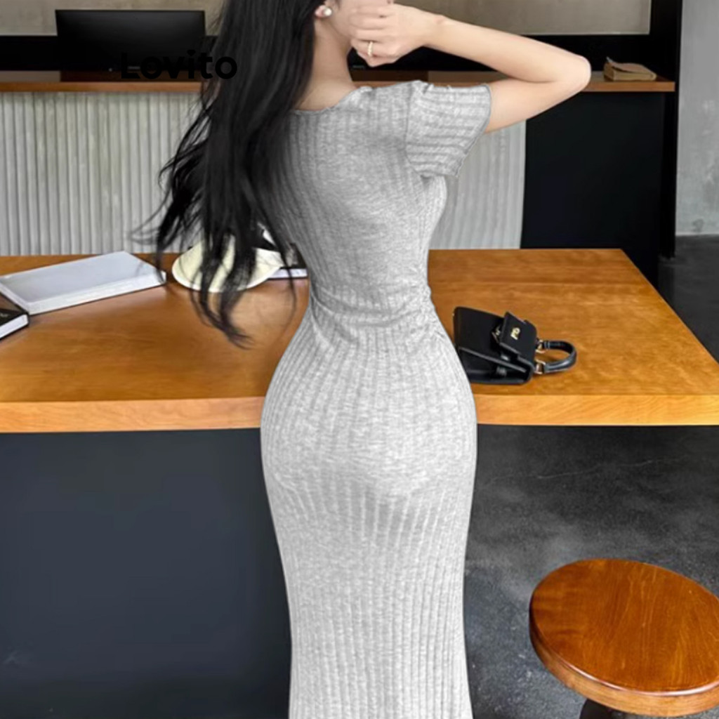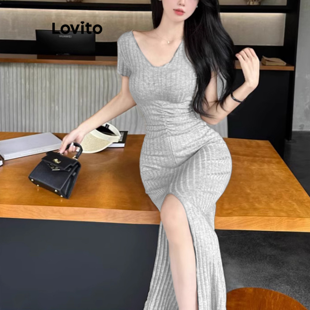 (LIVE STREAM SALE) Lovito Vestido casual simples com frente dividida para mulheres L108ED610