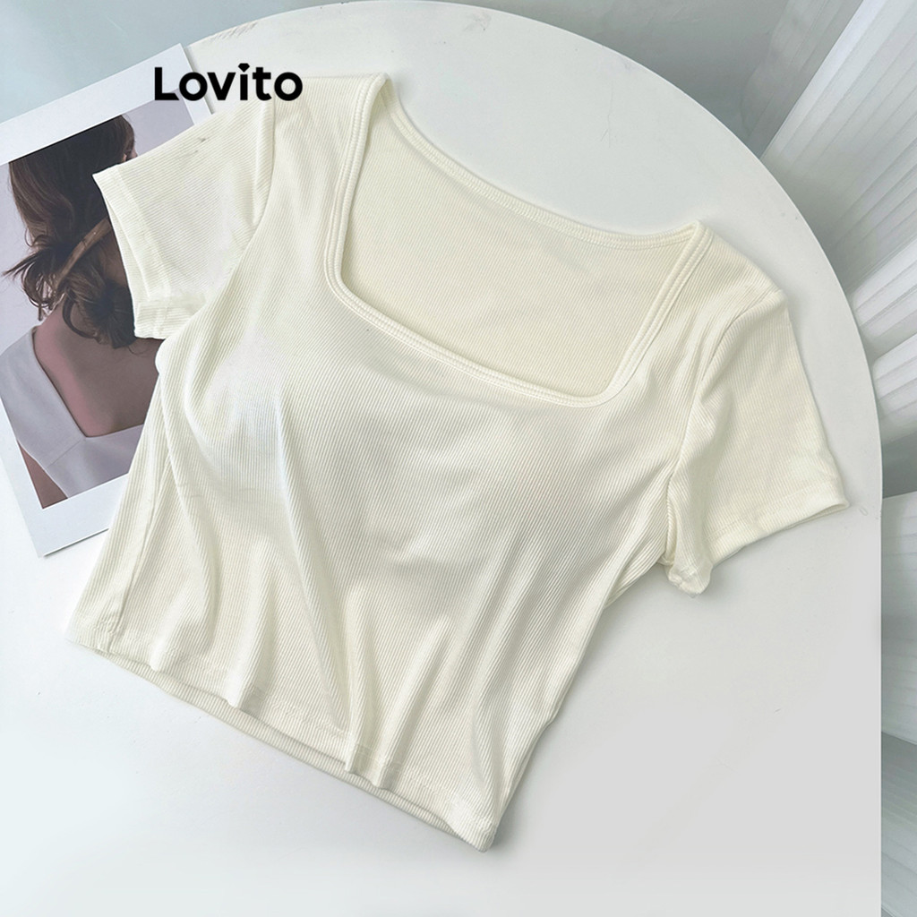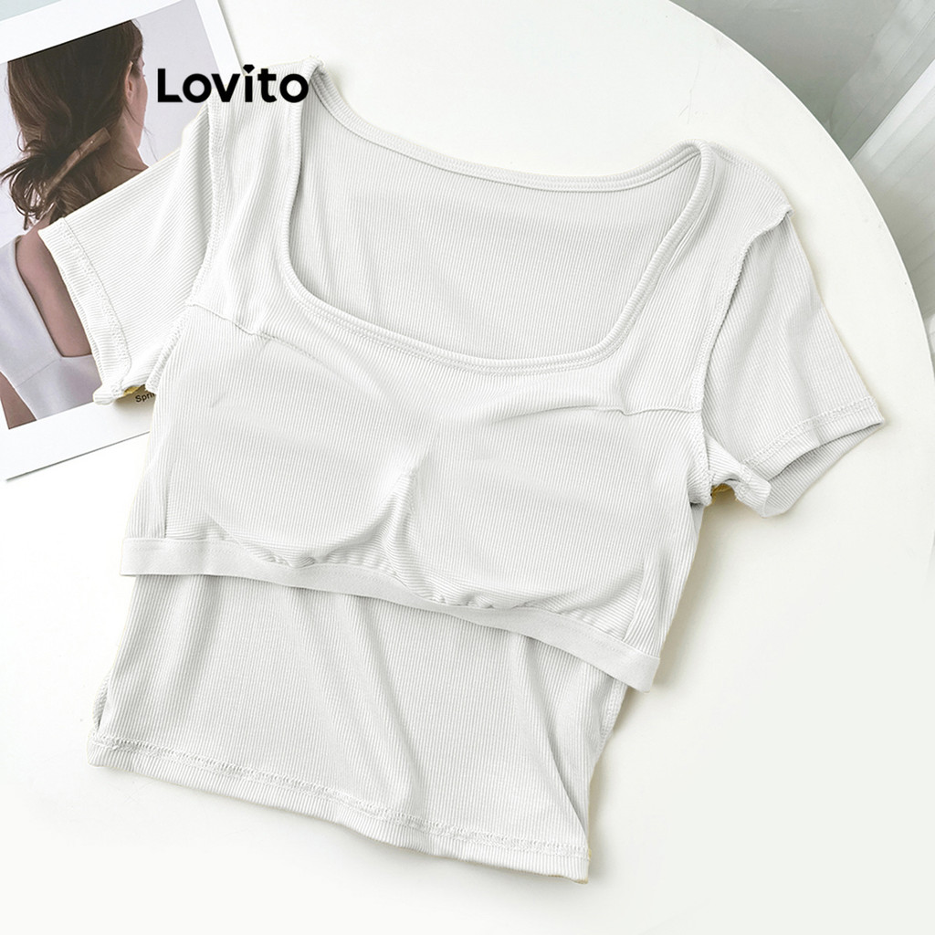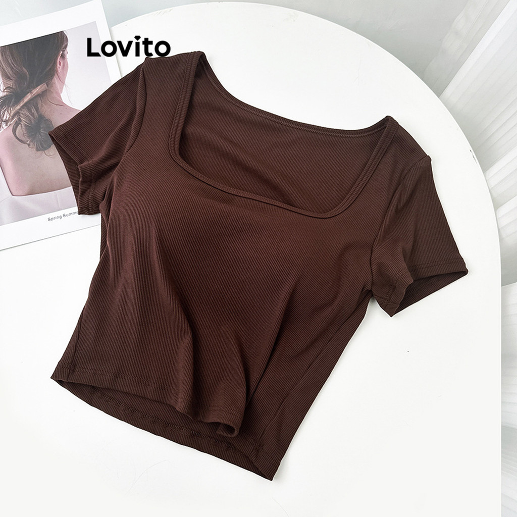 Lovito Camiseta Casual Lisa Básica Para Mulheres LNE24089 (Multicolorido)