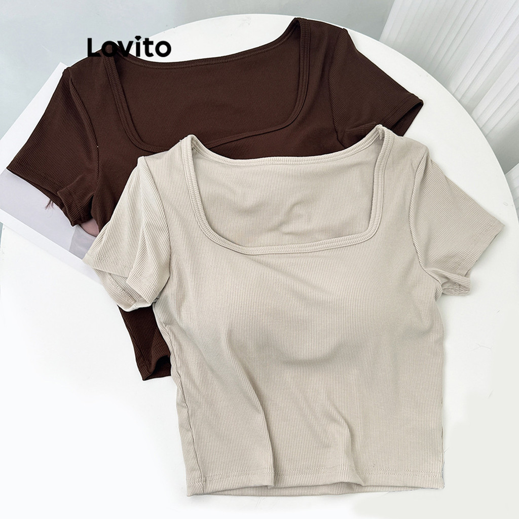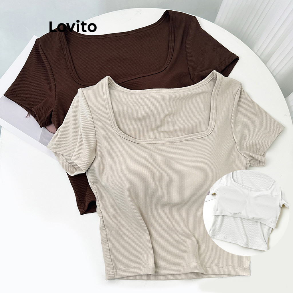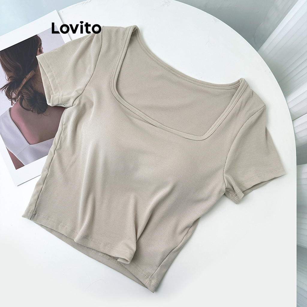 Lovito Camiseta Casual Lisa Básica Para Mulheres LNE24089 (Multicolorido)