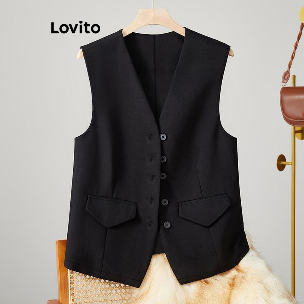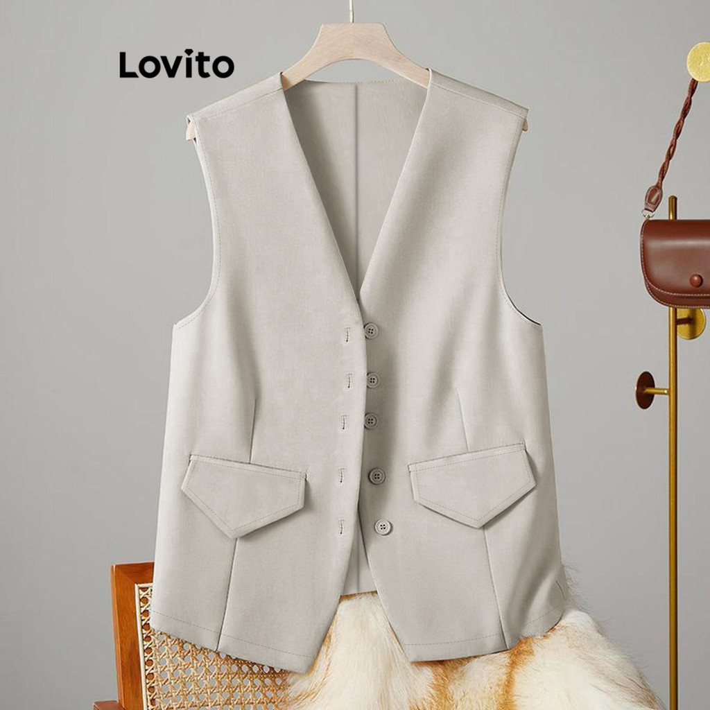 Lovito Regata Casual De Verão Com Botão Frontal E Ombro Frio Para Mulheres LNE52456