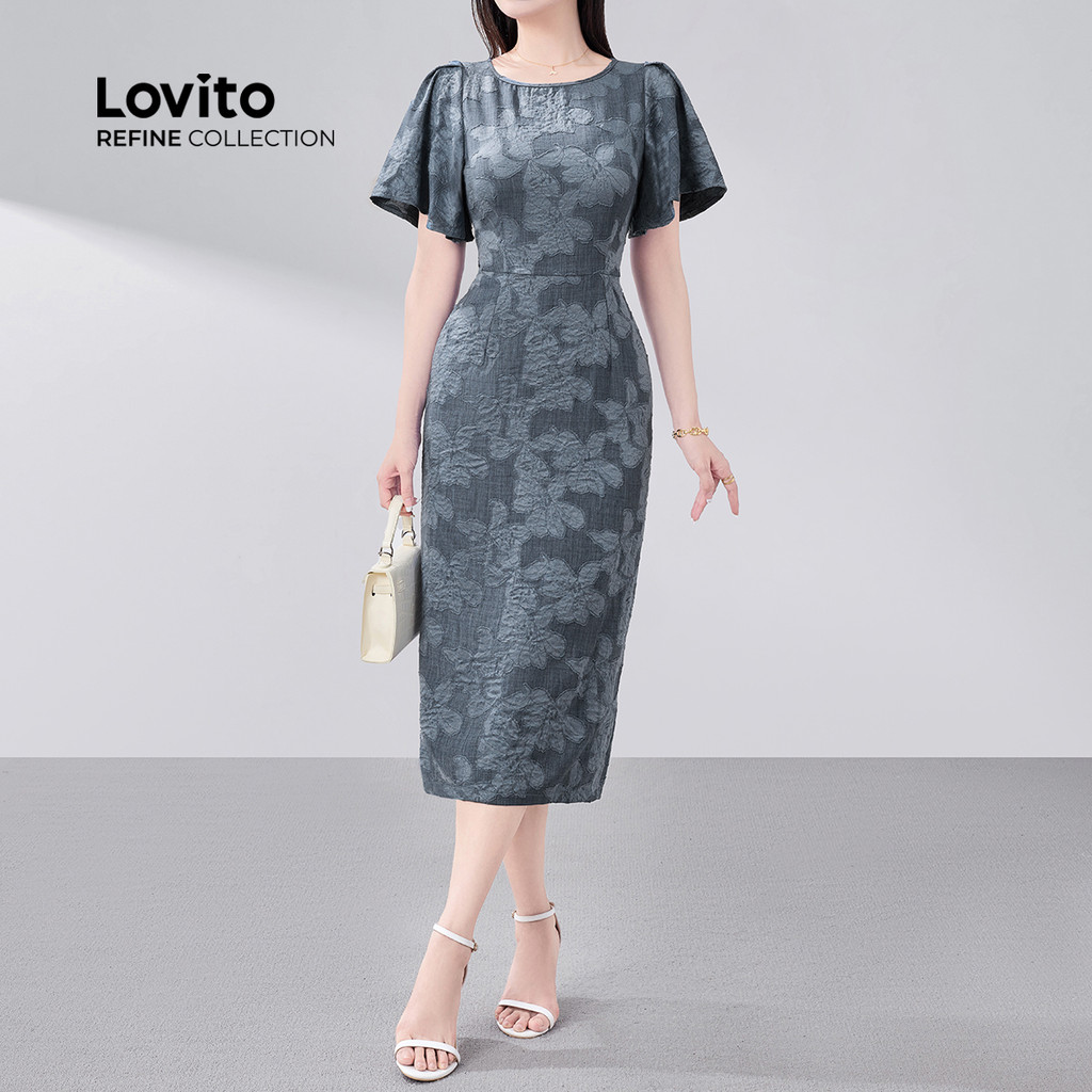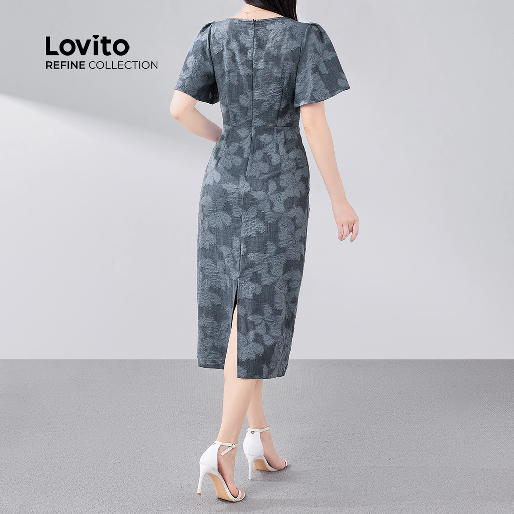 (Lovito Refine) Vestido Boho Doblado Primavera/verão Azul para Mulheres LR18E062
