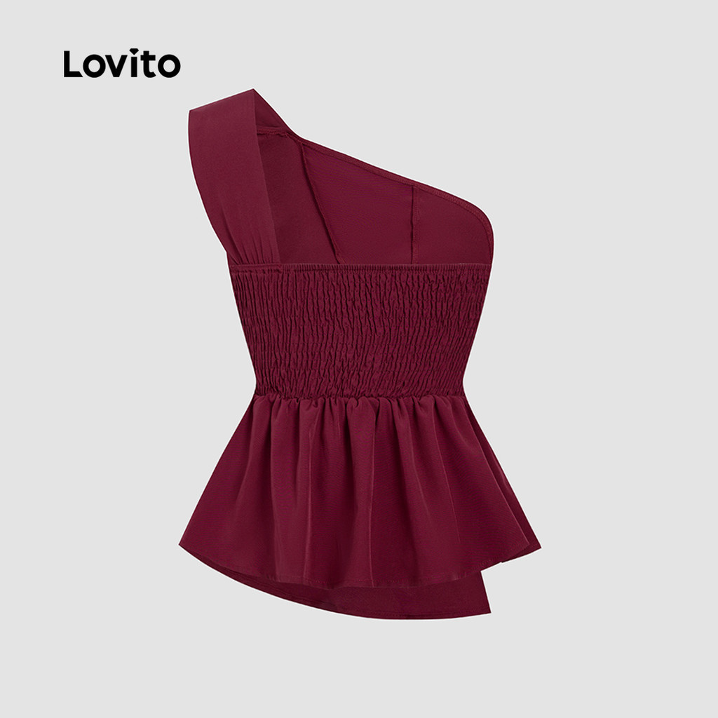 Lovito Blusa Casual De Festa Com Fenda Assimétrica E Franzida Na Cor Bordô Ideal Para Primavera/verão L155AD298