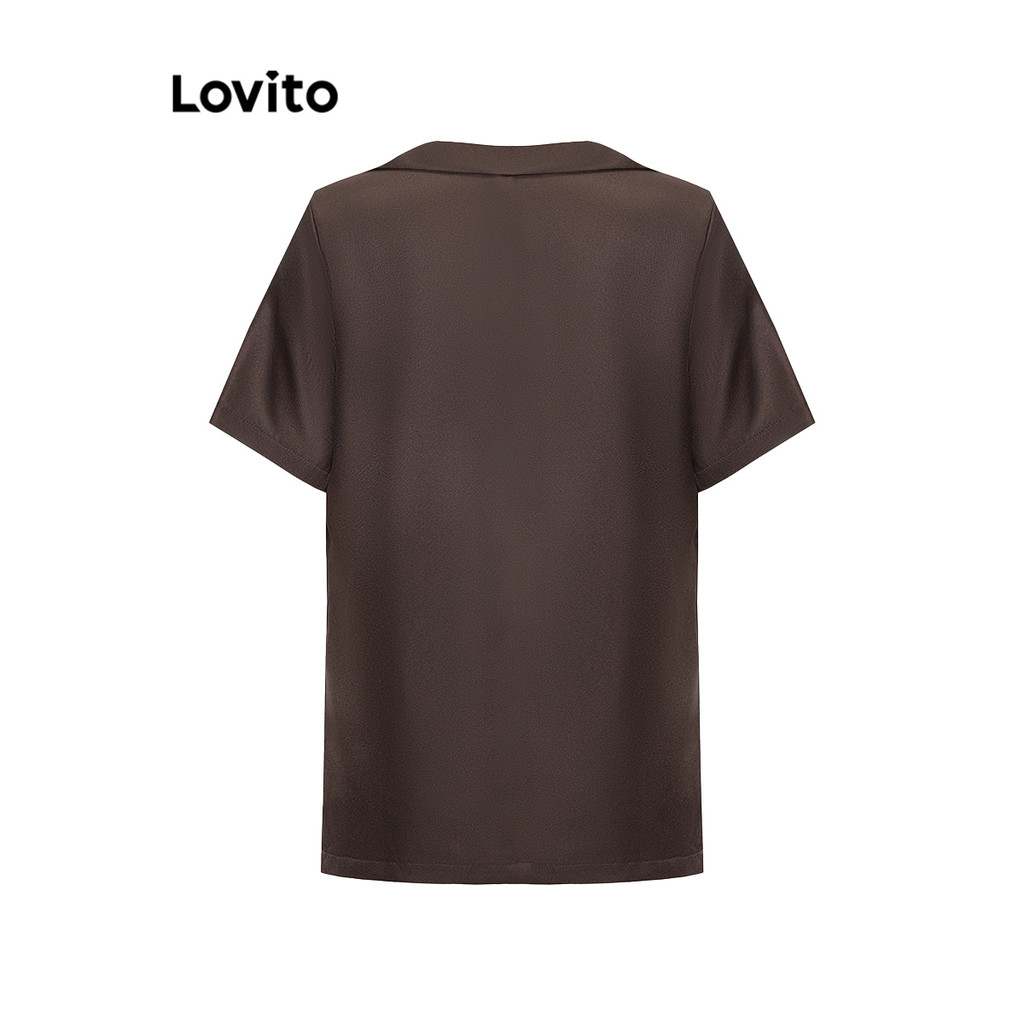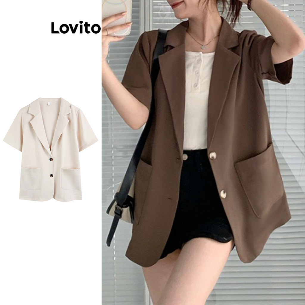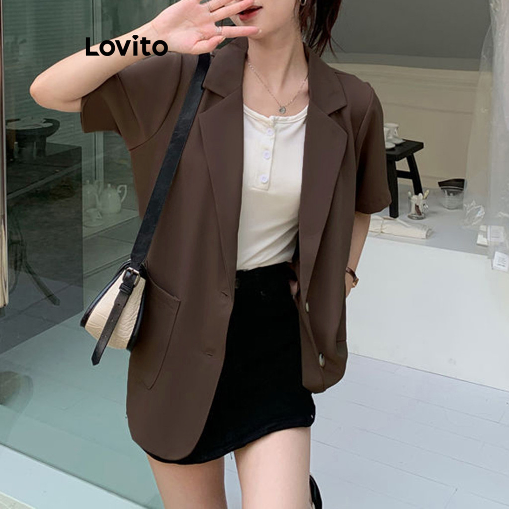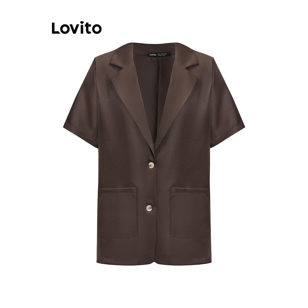 Lovito Blazer Casual Com Bolso Liso E Botão Frontal Para Mulheres LNA39045 (Café/damasco)