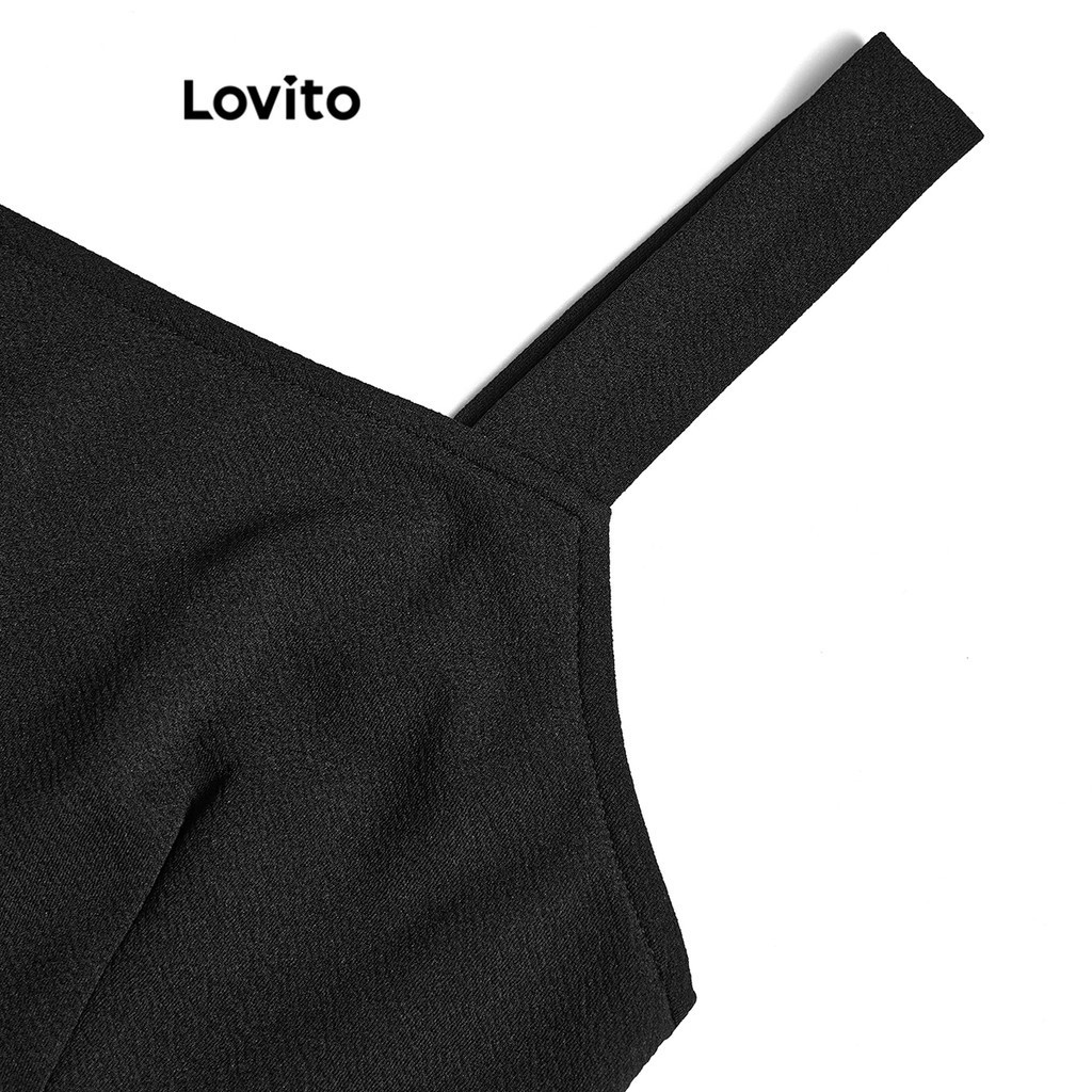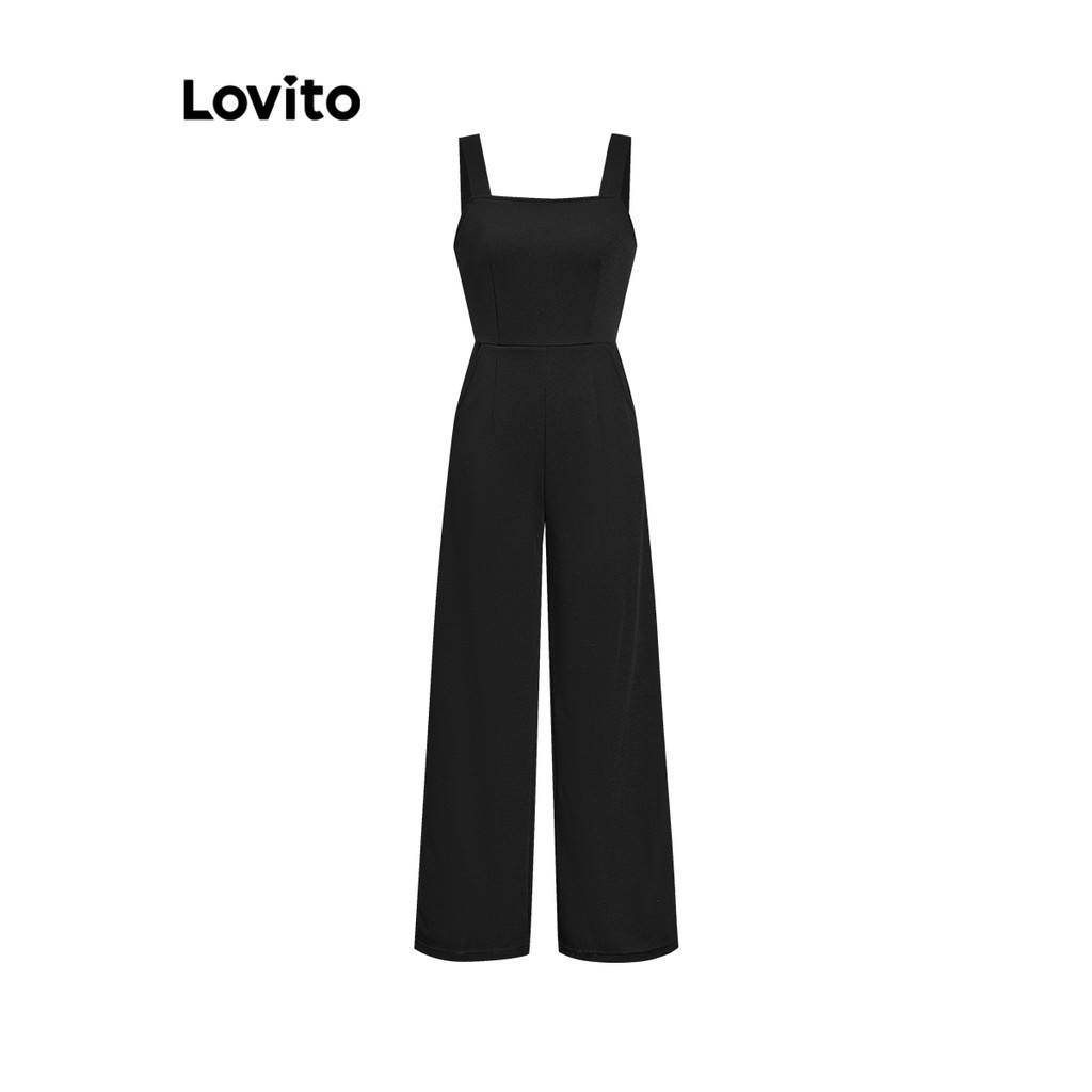Lovito Macacão Elegante Com Bolso Liso E Plissado Para Mulheres L77ED326 (Multicolorido)