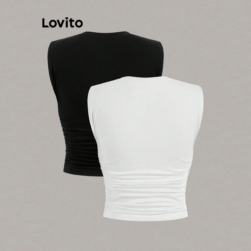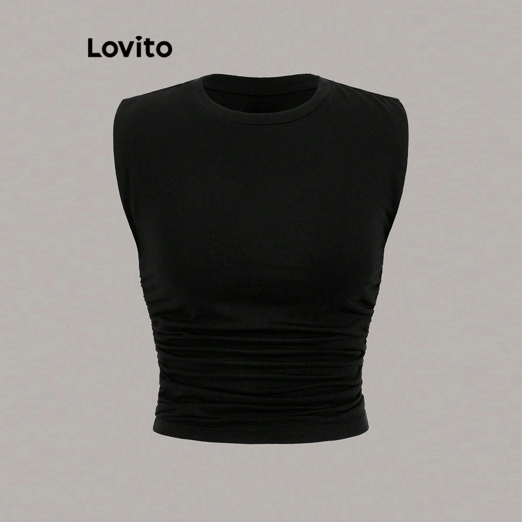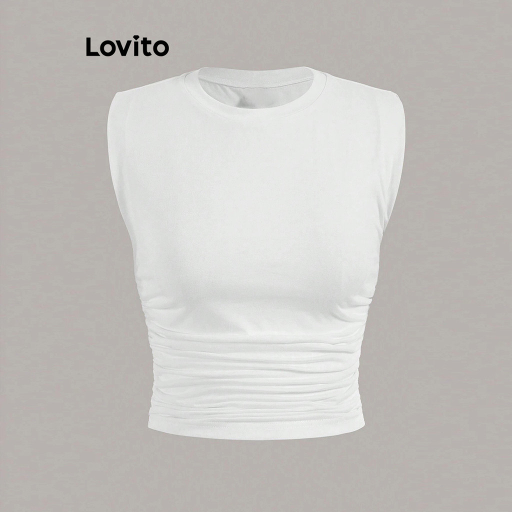 Lovito Regata Casual Lisa Plissada Básica De Verão Para Mulheres L80ED367