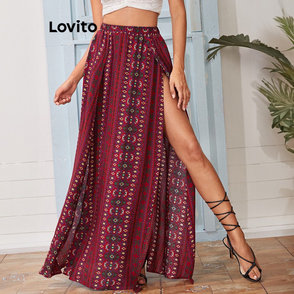 Lovito Saias Boho Com Estampa Tribal E Saia Frontal Dividida Para Mulheres LNL77449