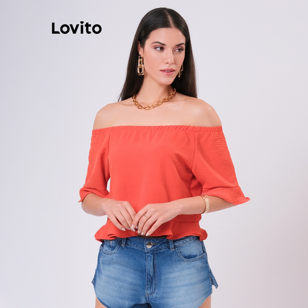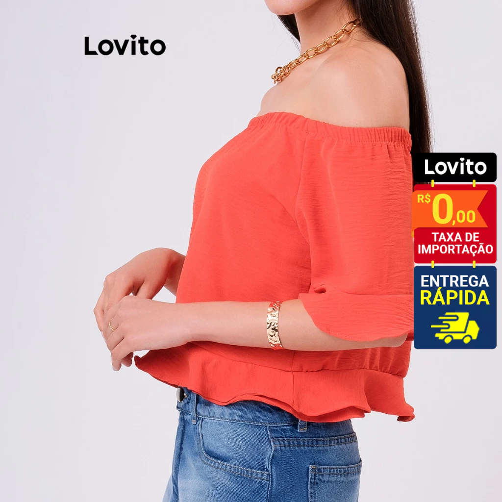 Lovito Blusa Ombro a Ombro com Babados Ciganinha Basica Feminina LB11BRL040