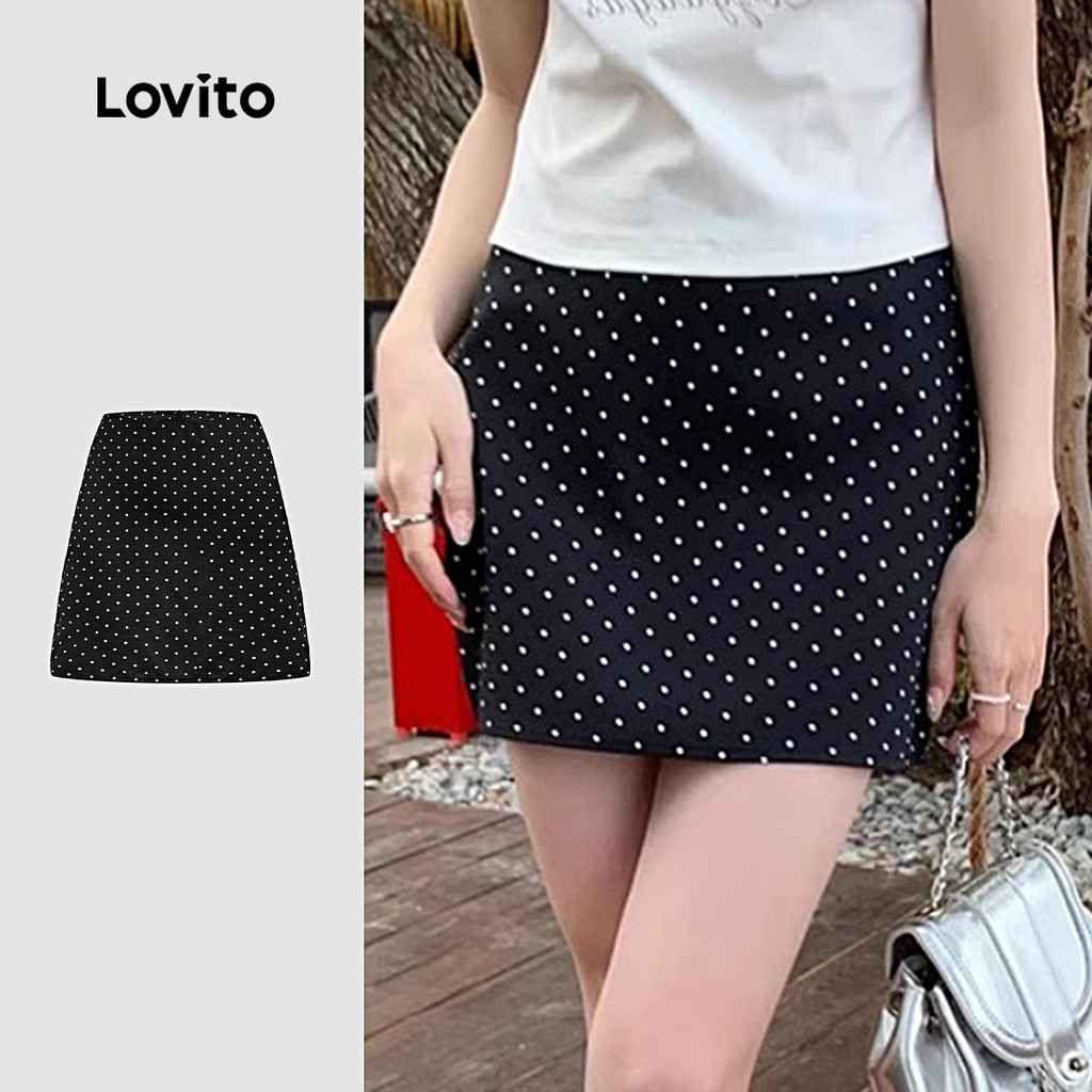 Lovito Saia Casual Feminina Preta Minimalista de Lazer para Primavera/Verão L144AD197