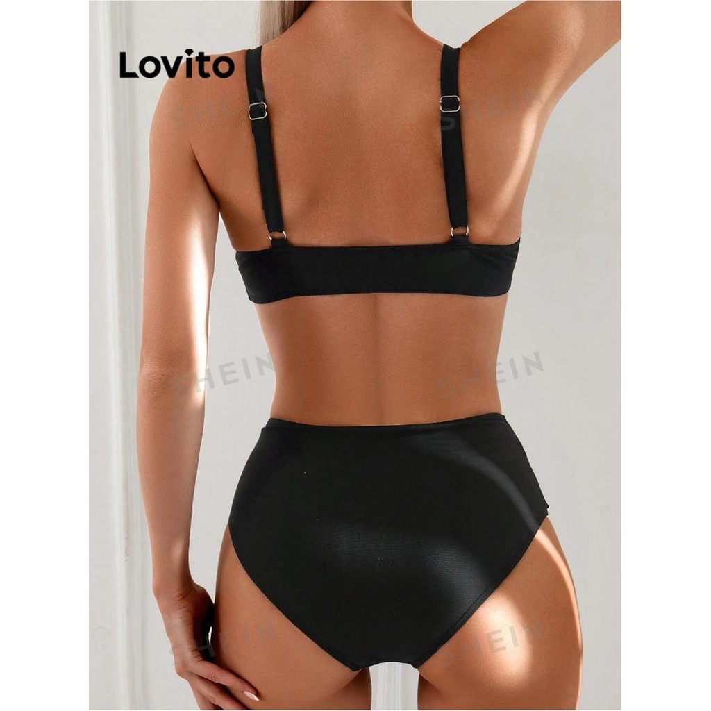 Lovito Conjuntos De Biquíni Sexy Conjuntos De Biquíni De Metal Liso Para Mulheres LNL81009