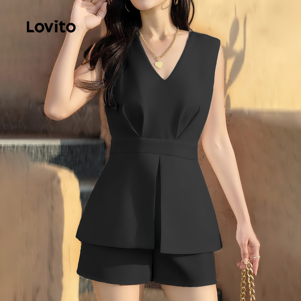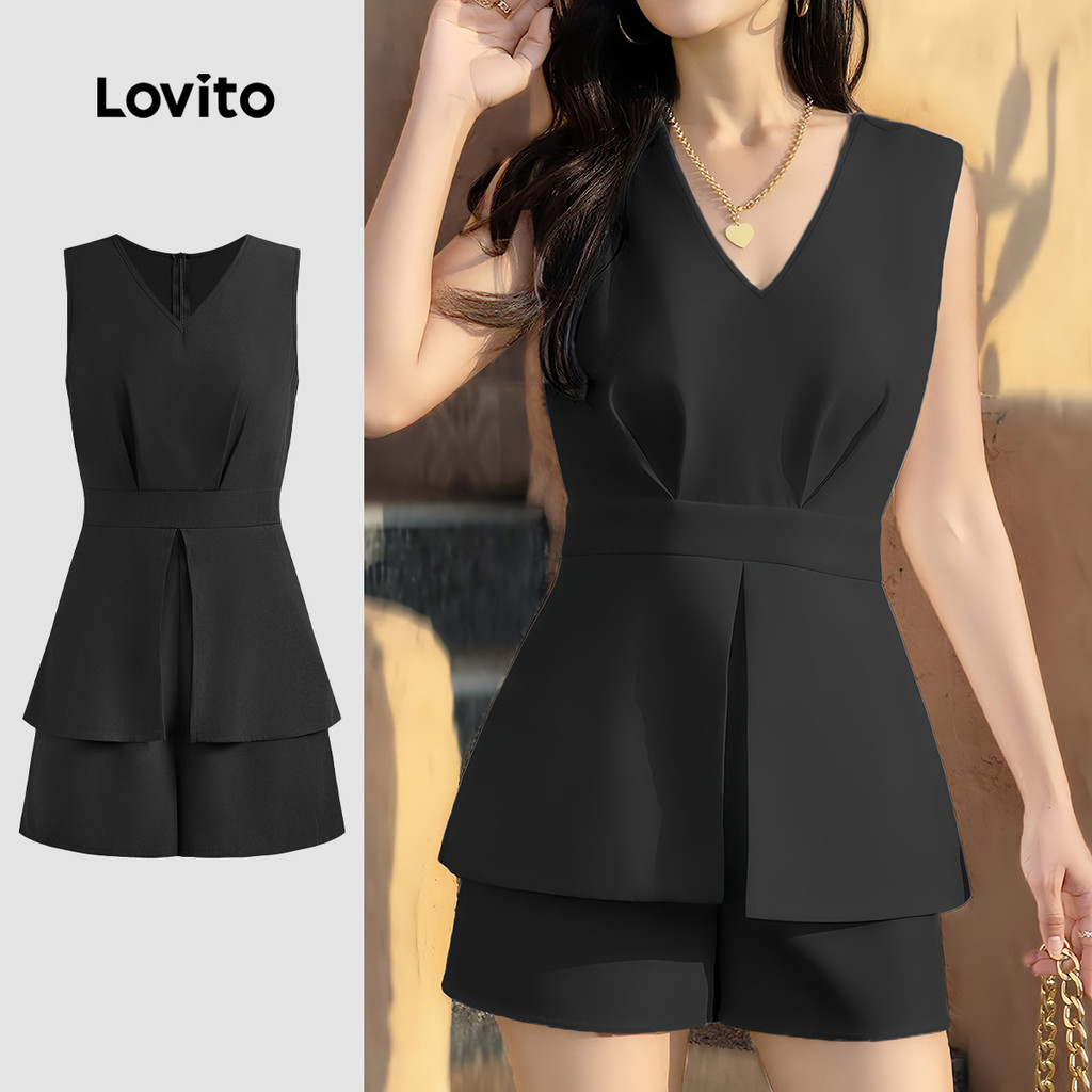 Lovito Macacão Feminino Elegante Estrutura Lisa Linha Verão/primavera L128ED624