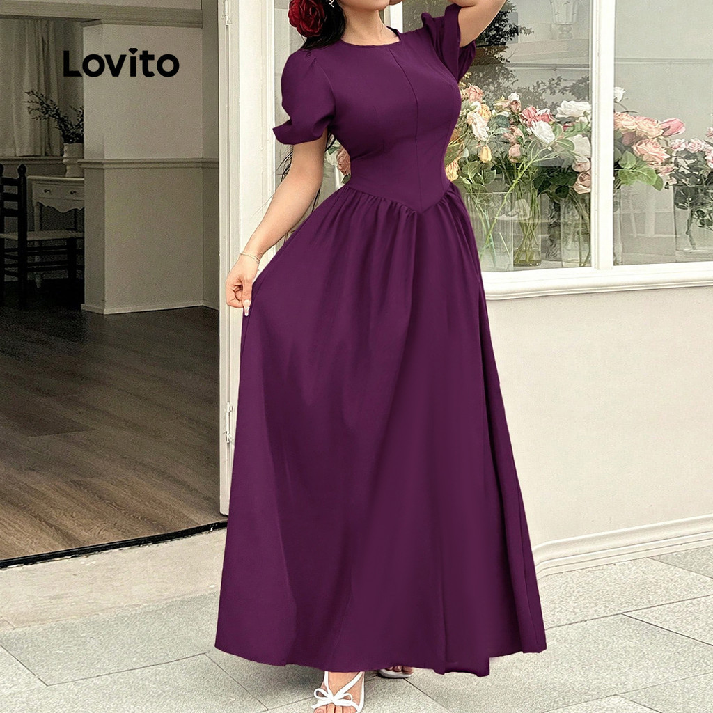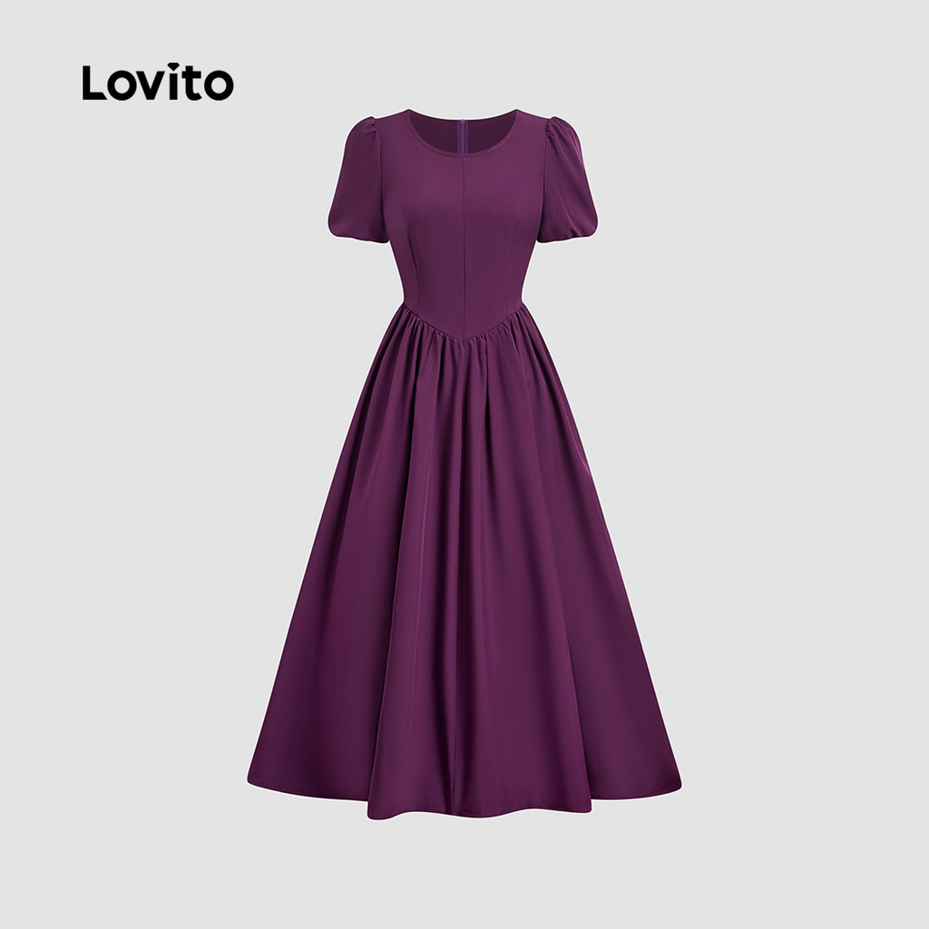 (New) Lovito Estrutura de Costura Do Vestido Elegante em Tecido Todas As Estações Cinza roxo LBL28006