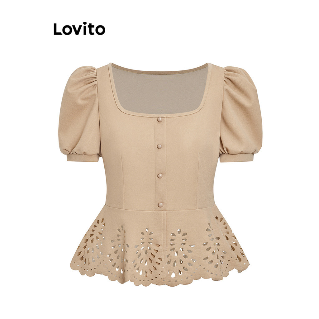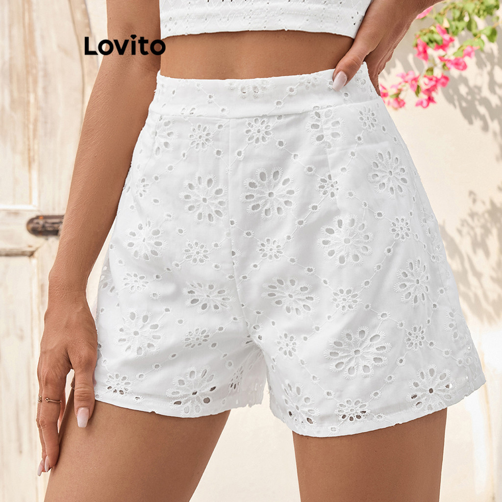 Lovito Shorts elegantes com bordados lisos e ilhós para mulheres LBL18106