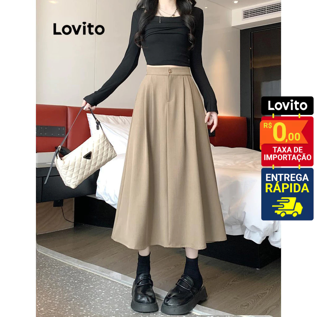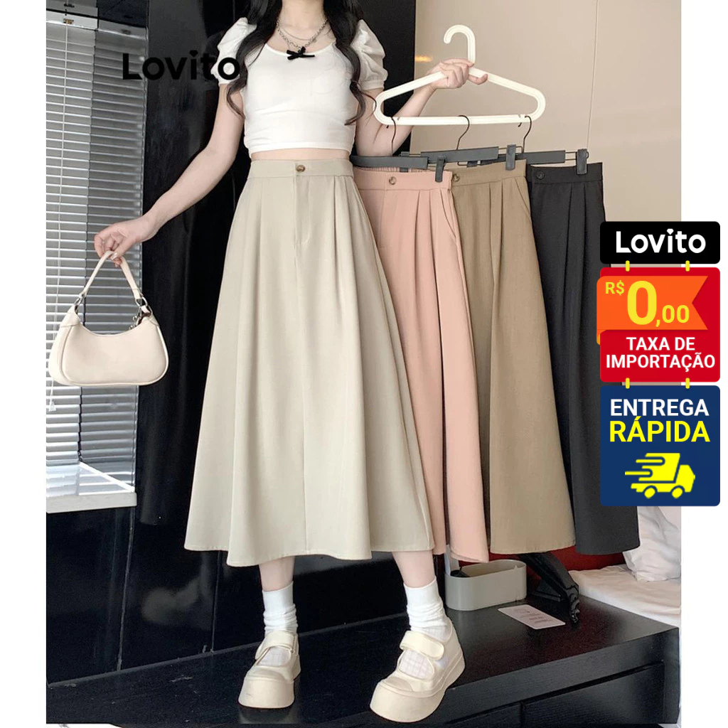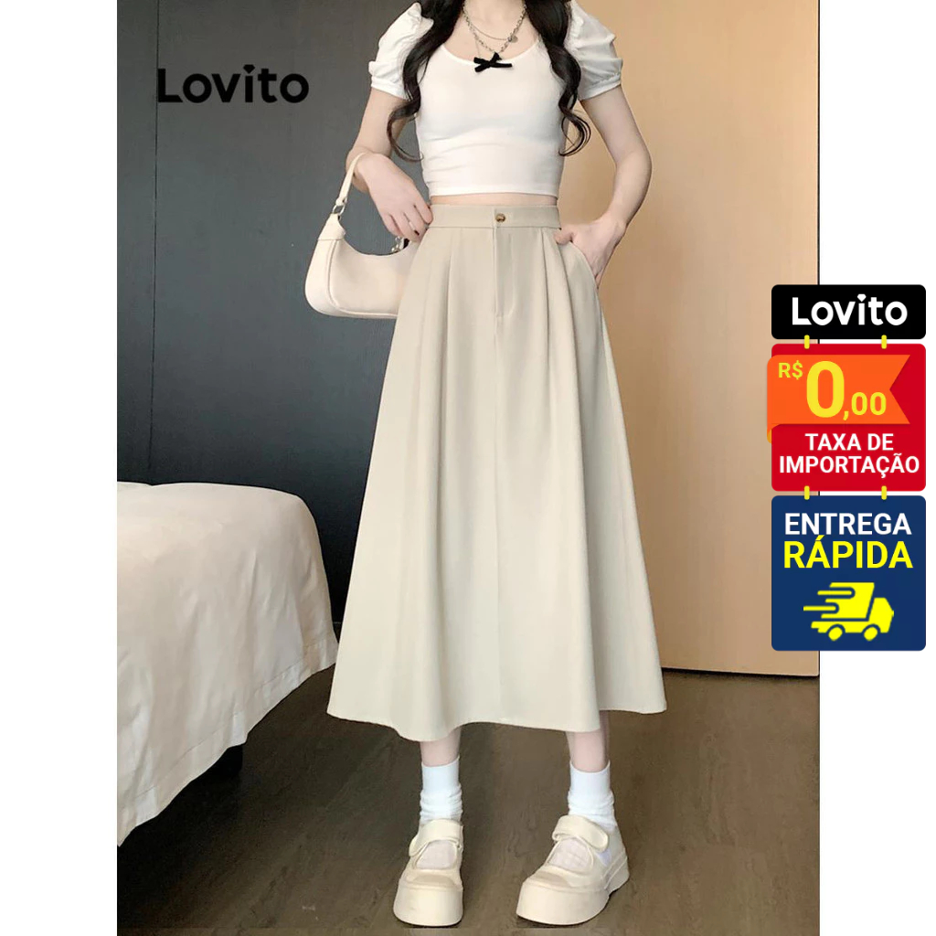 Lovito Saia Feminina Midi com Bolso Lateral LNE51491