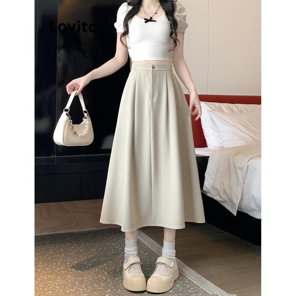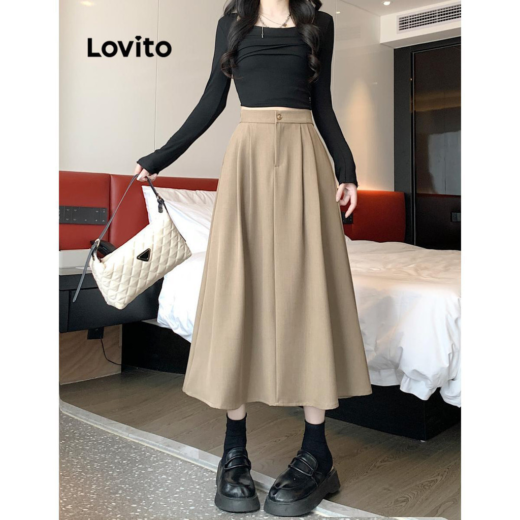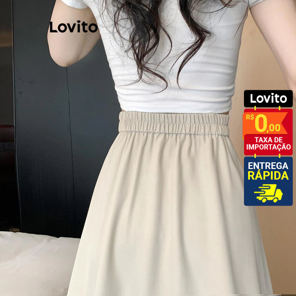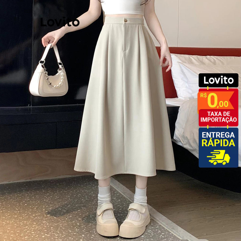 Lovito Saia Feminina Midi com Bolso Lateral LNE51491
