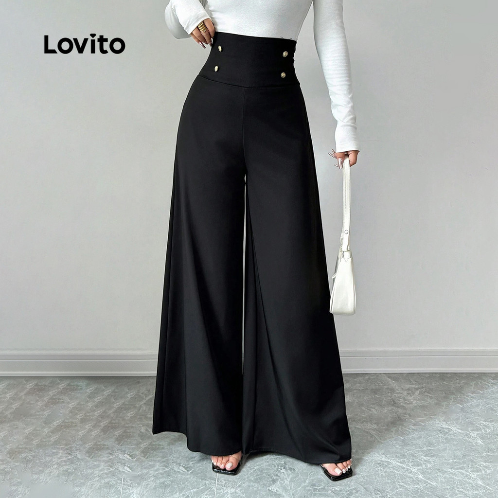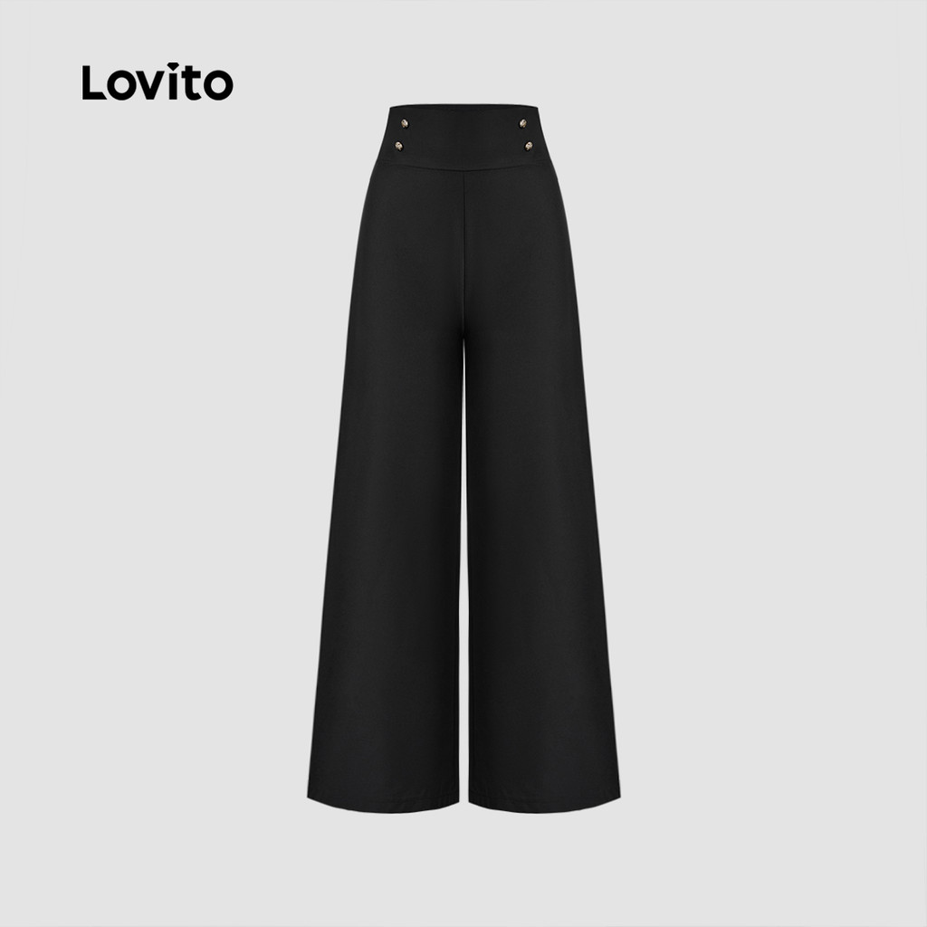 Lovito Calça Elegante Com Botão Liso E Zíper Verão/Primavera Para Mulheres L120LD1037
