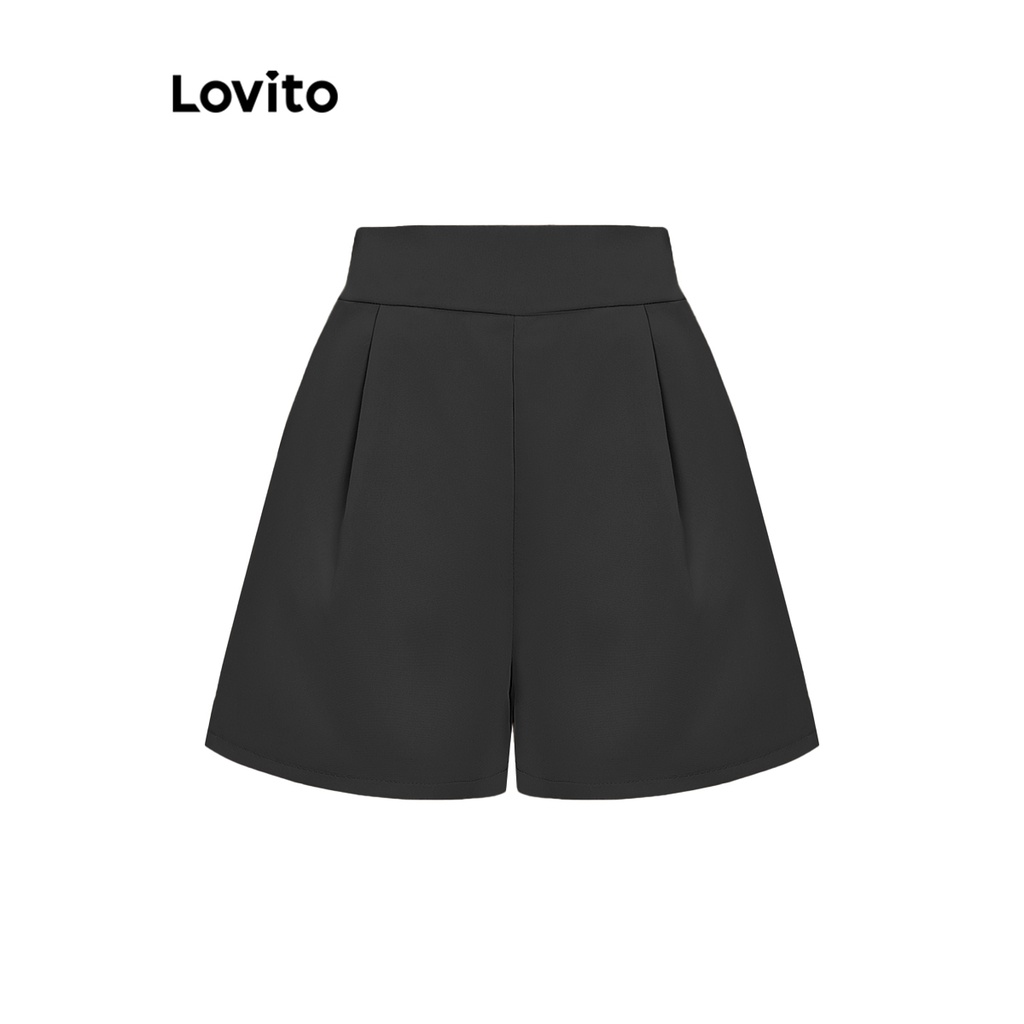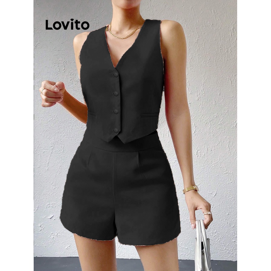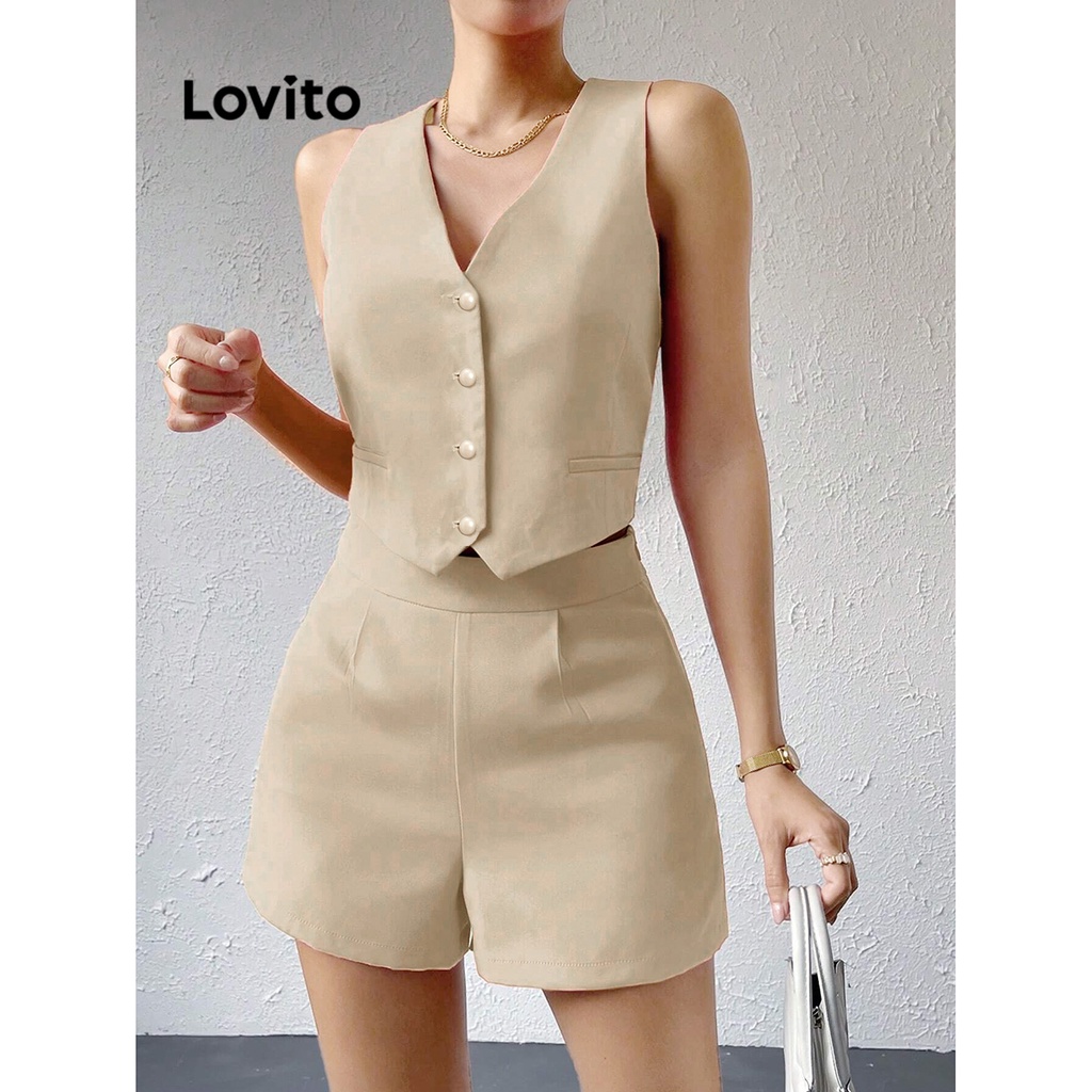 Lovito Conjuntos De Shorts Elegantes Com Botões Lisos E Bolsos Frontais Para Mulheres L74ED069