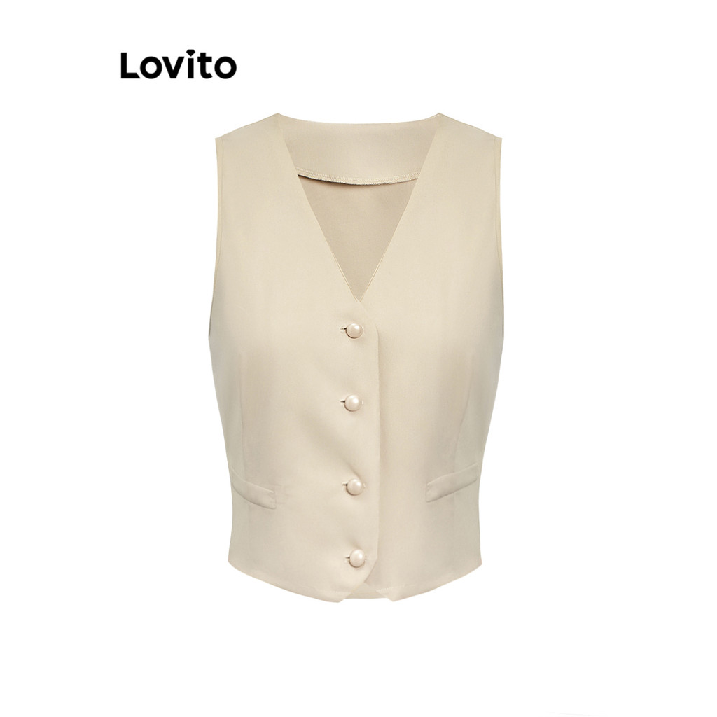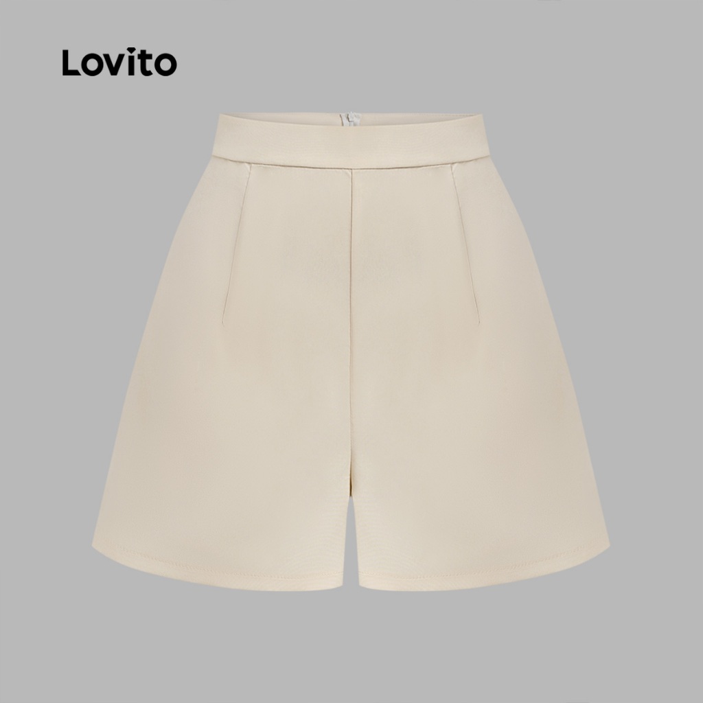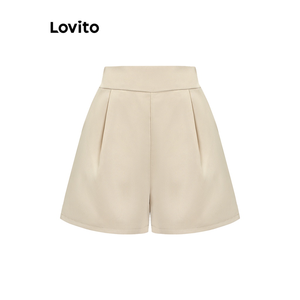 Lovito Conjuntos De Shorts Elegantes Com Botões Lisos E Bolsos Frontais Para Mulheres L74ED069