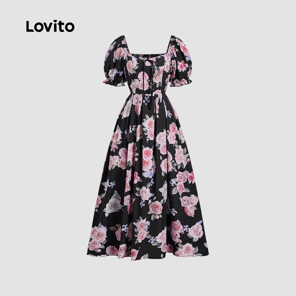 Lovito - Vestido Boho com Linha de Estrutura Amarra Na Frente Toque Suave Vestido de primavera/verão LBL26107