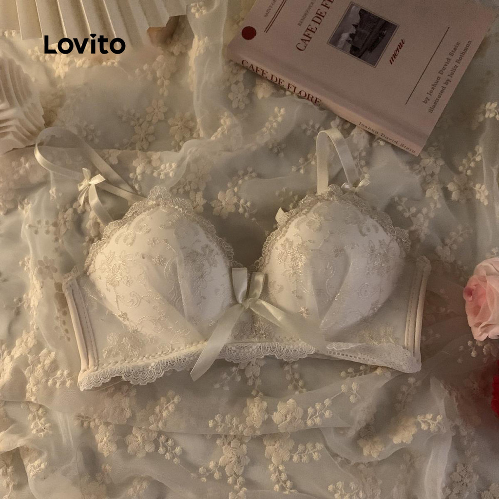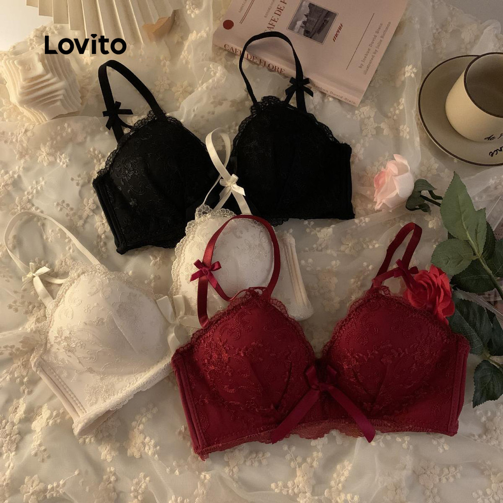 Lovito Bralette De Pele Macia Sexy Com Laço De Renda Para Mulheres LNE50359